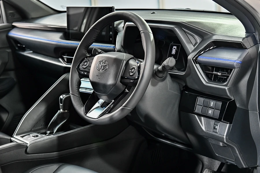 - วัสดุคอนโซลหุ้มหนังสีดำ พร้อมบุนุ่ม บริเวณด้านข้างเข่าคนขับ ตกแต่งด้วยสีดำเปียโนแบล็ก และสีเงินเมทัลลิก