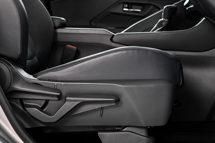 - วัสดุคอนโซลหุ้มหนังสีดำ พร้อมบุนุ่ม บริเวณด้านข้างเข่าคนขับ