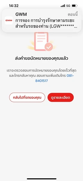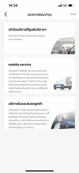 เปิดแอปฯ GWM ไปที่เมนู "รูปรถ" และเลื่อนไปที่ "การจองคิวเข้ารับบริการ"
