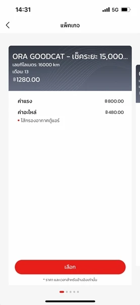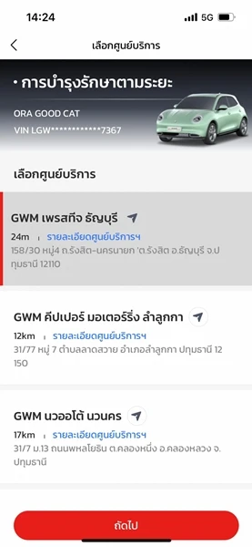 "เลือกศูนย์บริการที่สะดวกและเลือกเมนูที่ต้องการ "บำรุงรักษาตามระยะทาง" หรือ "งานซ่อมทั่วไป