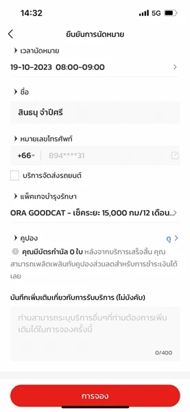 จองซ่อมบำรุงเลือกเข้ารับบริการที่ศูนย์บริการ ตรงนี้มีเมนูที่ สามารถเลือกอีกว่าจะเป็นระบบ Mobile Service เช็กระยะถึงบ้าน หรือ บริการรับรถจากบ้านเข้าศูนย์บริการ* (*อาจมีค่าใช้จ่ายเพิ่มเติม)