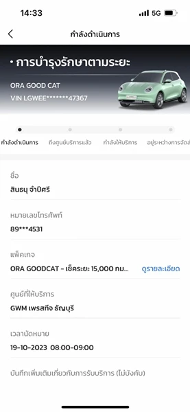 เมื่อซื้อรถในเครือ GWM ทั้ง HAVAL ORA หรือ TANK ลงทะเบียนในแอปฯ GMW เรียบร้อยแล้ว เมื่อต้องการเข้าเช็คตามระยะทาง (มีการแจ้งเตือนจากเจ้าหน้าที่โทรบอกหรือผ่านข้อความเตือนเป็นปกติ) ในแอปฯ นี้ก็จะมีการเตือนสถานะหรือสามารถดูระยะทางที่วิ่งไปแล้วจากในนี้ได้ทันที ซึ่งข้อมูลทุกอย่างของรถคันที่ลงทะเบียนเอาไว้ จะเข้าสู่ฐานข้อมูลส่วนกลางของ GWM Thailand จากนั้นเมื่อเรานัดหมายการเข้าใช้บริการในศูนย์บริการที่จองเอาไว้ ทางศูนย์ฯ นั้น ก็จะดึงข้อมูลจากส่วนกลางเพื่อตรวจสอบข้อมูลอย่างละเอียดได้ทันที ทั้ง ชื่อ-สกุล ทะเบียนรถ ระยะทางที่วิ่ง การแจ้งเตือนของระบบรถยนต์ในกรณีที่มีไฟเตือนโชว์ ฯลฯ รวมถึง ข้อมูลรายละเอียดการซ่อมบำรุงตามระยะทางของ สิ่งที่ต้องทำ ขั้นตอนต่าง ๆ จะมาแบบครบถ้วนเตรียมความพร้อมเมื่อรถมาถึงตั้งแต่ทางเข้า
