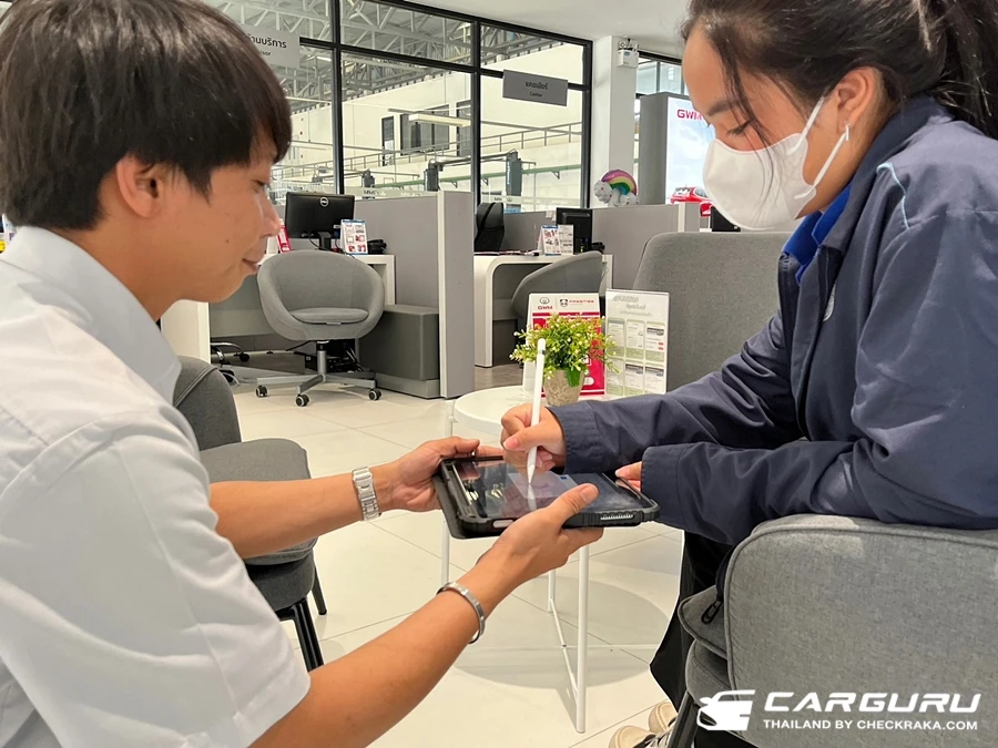 ในช่วงนี้สามารถนั่งและดูจอสถานะการทำงานในศูนย์บริการก็ได้ โดยจะเป็นทั้งจอบอกสถานะระหว่างการทำงานและมีภาพจากกล้องวงจรปิดแสดงให้เห็นทุกอย่างในระหว่างเข้ารับบริการ แต่ถ้าต้องไปธุระก็สามารถเปิดดูสถานะการซ่อมบำรุงได้ใน แอปฯ GWM ทำให้สามารถวางแผนการเดินทางกลับมารับรถได้สะดวก ซึ่งหากไม่สะดวกเปิดดูแอปฯ ทางศูนย์บริการก็จะโทรแจ้งเมื่อรถเสร็จสมบูรณ์อีกด้วย