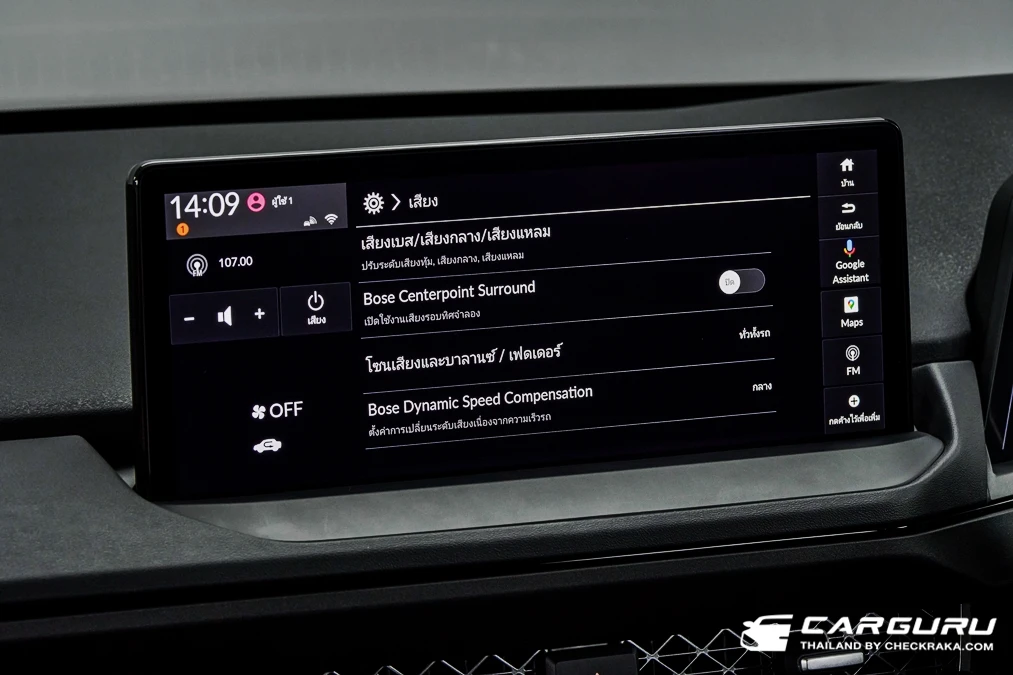 "เปิดเพลงดัง ๆ ให้เบสดังบูม ๆ" ใช้ได้กับระบบพลังเสียง BOSE คันนี้ ที่ให้ทั้งรายละเอียดเสียงเล็กน้อยของดนตรีและการแยกซ้าย-ขวาของเครื่องดนตรี ทำให้ชัดเจนมาก ไม่แพ้เครื่องเสียงระดับท็อปคลาสในรถยุโรป (ยกเว้นคนหูทองมาก ๆ) นับว่าเพียงพอและแทบไม่ต้องไปปรับเปลี่ยนอะไรเพิ่มเติมแล้ว แถมยังเลือกปรับการแยกเยอะเสียง หรือปรับ equalizer และเลือกรูปแบบการกระจายเสียงลำโพงได้หลายแบบอีกด้วยครับ
