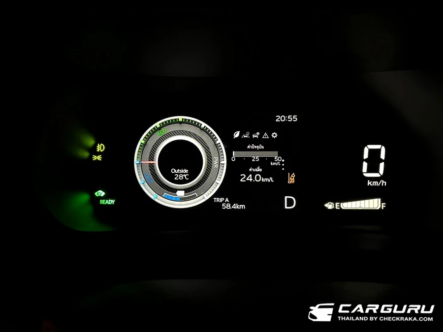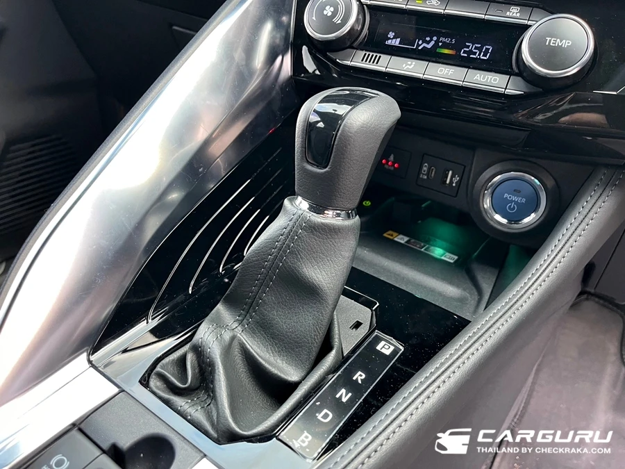 ขนาดแบตเตอรี่แบบลิเธียมไอออน 4.3 แอมแปร์-ชั่วโมง ไม่ใหญ่มากพื้นที่จำกัด ผ่านเกียร์อัตโนมัติ e-CVT ตัวเลขจากโรงงาน 26.3 กม./ลิตร (อ้างอิงจาก Eco Sticker) ความจุถังน้ำมัน 36 ลิตร