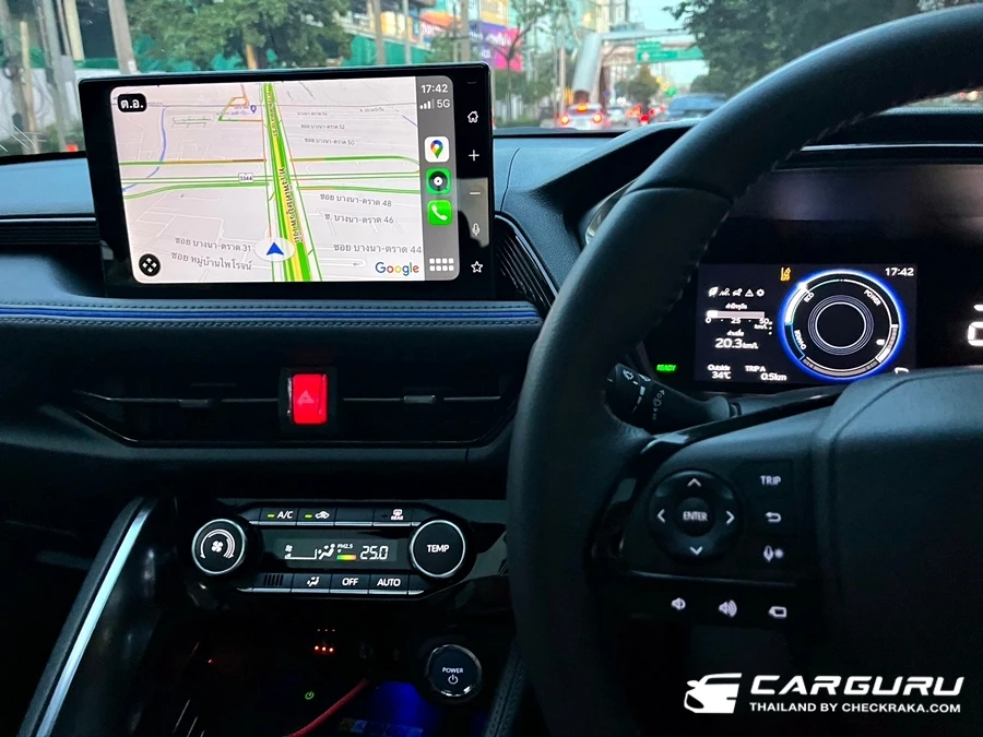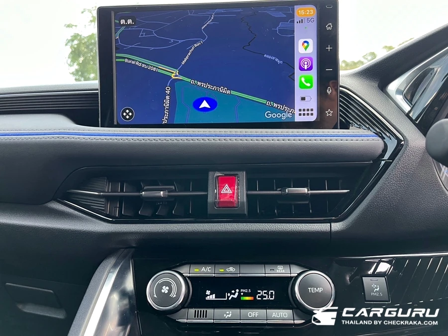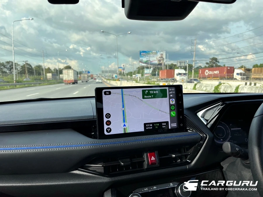 สื่งอำนวยความสะดวกสบายนับว่าเยอะคุ้มมากกับรถและราคาระดับนี้ เริ่มด้วยระบบ Apple CarPlay และ Android Auto รองรับการเชื่อมต่อแบบไร้สาย พร้อม T-Connect* , Wireless Charger ตรงจุดนี้มีตัวล็อคกันโทรศัพท์ขยับตัวมาให้ด้วยอันนี้ดีงามเลยครับ ไฟหน้าเปิดปิดอัตโนมัติ เบาะคนขับปรับไฟฟ้า หลังคาโปร่งแบบพาโนรามิค (เปิดไม่ได้) ระบบเครื่องเสียงลำโพง Pioneer 6 ตำแหน่ง ระบบกรองฝุ่น PM2.5 และช่องปรับอากาศตอนหลัง เบาะหลังแบ่ง 60 : 40 และพับแบนราบ ที่เท้าแขนตอนหลัง ระบบไฟในห้องโดยสารเป็นหลอด LED และฝาท้ายไฟฟ้า Kick-Activated
