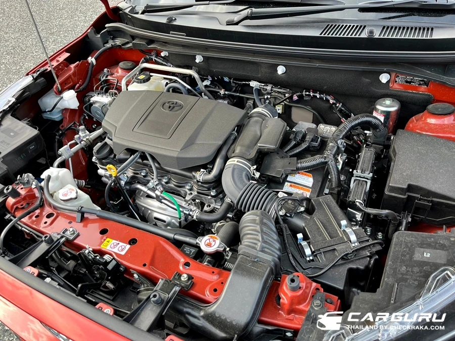เริ่มที่อัตราเร่งออกตัว ด้วยพลัง เครื่องยนต์ไฮบริด 2NR-VEX ขนาด 1.5 ลิตร 4 สูบแถวเรียง DOHC 16 วาล์ว Dual VVT-i รองรับ E20 ที่เรี่ยวแรงน้อยเน้นประหยัด 91 แรงม้า กับ 121 นิวตันเมตร ไม่พอแน่กับการลากตัวถังขนาดนี้ 1.2 ตัน (ซึ่งก็ไม่ได้เยอะอะไรนัก) แต่ก็กลัวว่าจะไม่พอต่อเท้าเจ้าของรถจึงผสานมอเตอร์ไฟฟ้ากำลัง 80 แรงม้า แรงบิด 141 นิวตันเมตร เข้าไปเสริมพลังให้แรงขึ้น และผ่านเกียร์อัตโนมัติ e-CVT ยิ่งประหยัดอีกด้วย จนได้พลังรวมทั้งระบบ 111 แรงม้า ส่วนแรงบิดไม่แจ้งเป็นทางการแต่คร่าว ๆ ก็ป้วนเปี้ยนแถว ๆ ประมาณ 180 - 200 นิวตันเมตร* (*เป็นการคาดและประมาณเองไม่ได้ขึ้นไดโนฯ วัดนะครับ)
