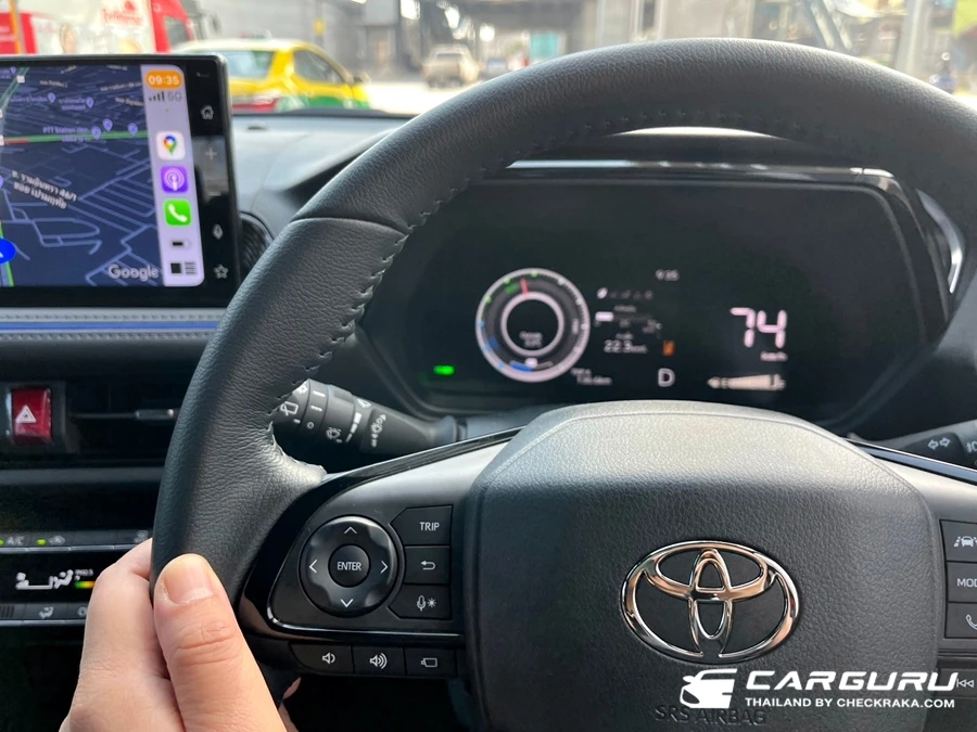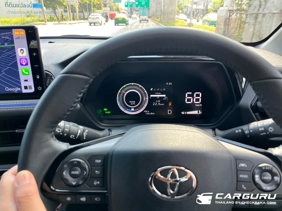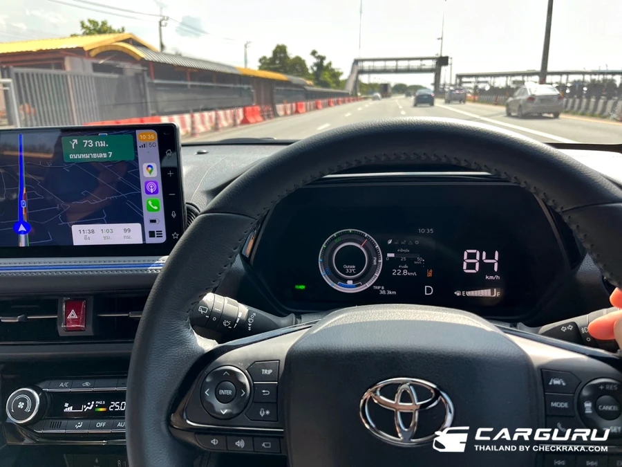 พวงมาลัย หนักเกิดคาด ด้วยรถเซ็กเมนต์นี้จะเบามาก จนหลายคนบ่นว่าเบาเกินไป แต่ Yaris Cross กลับ "ตึง ๆ มือ" มีน้ำหนักคล้ายขับรถเก๋งขนาดใหญ่หรือว่ารถที่ใช้ระบบไฮดรอลิคในการผ่อนแรงเลย อาจถูกตั้งความหนืดเอาไว้ใช้หนัก ช่วยในการควบคุมทิศทางได้ง่ายขึ้น เพราะเมื่อขับความเร็วสูง ต้องคอยแต่งซ้าย-ขวา บ่อย ๆ หรือมีช่วงระยะเหลือในการควบคุมพวงมาลัยมากเกินไป ถ้าเบามากก็อาจทำให้คุมยากขึ้นก็เป็นได้ครับ