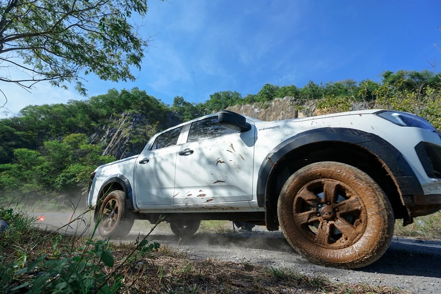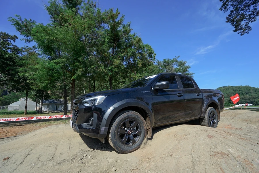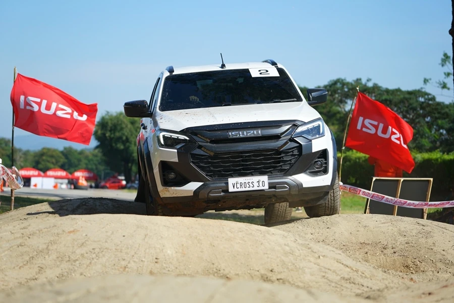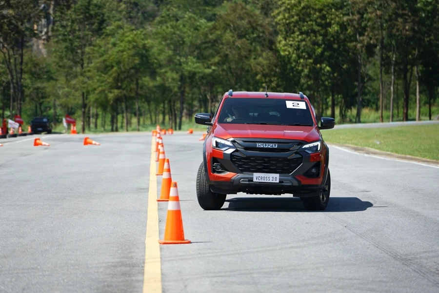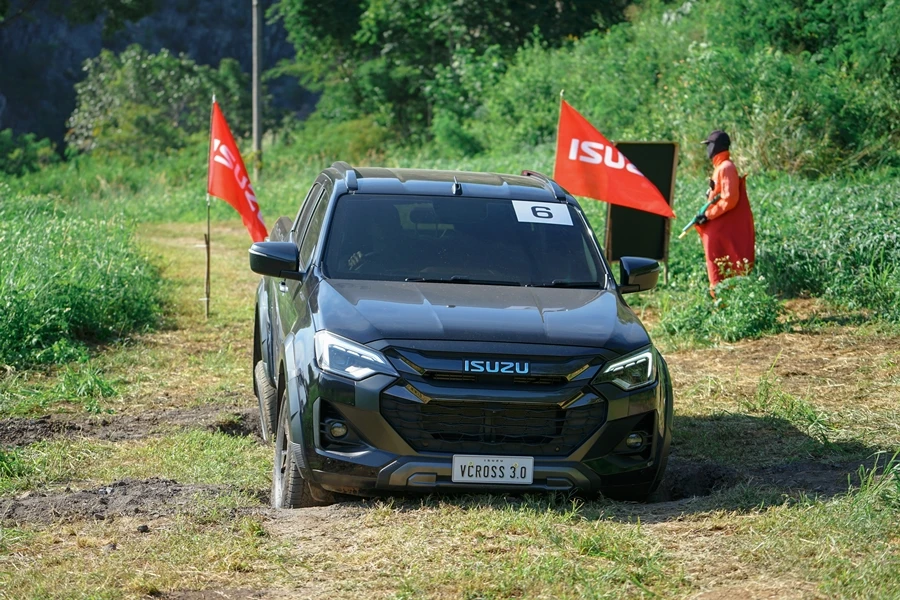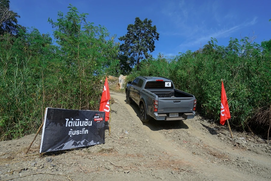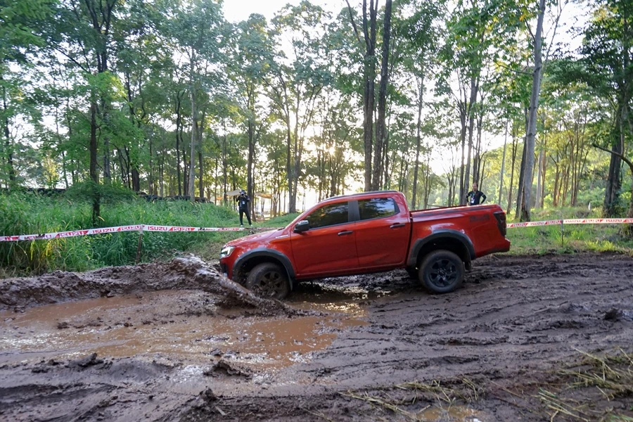 • สถานีทดสอบออฟโร้ดสุดท้าทาย - ไล่เลียงเริ่มกันที่ เนินสลับพสุธาสั่นสะท้าน ไต่เนินชันสุดระทึก สถานีทดสอบ Rough Terrian ลุยโคลนดำดินดิ่งพิภพ และทางวิบากฝ่าท่อนซุง เพื่อทดสอบสมรรถนะของเครื่องยนต์ อีซูซุ 3.0 ดีดีไอ บลูเพาเวอร์ แรงจัดตั้งแต่รอบต่ำ ตอบสนองได้อย่างรวดเร็ว ทนทาน เสริมประสิทธิภาพการขับขี่ทั้ง 2 ล้อ และ 4 ล้อ ด้วยระบบ Rough Terrain Mode ควบคุมการกระจายกำลังทุกช่วงความเร็ว ระบบ Electric Diff-Lock ควบคุมการทำงานด้วยไฟฟ้า ช่วยล็อกเฟืองท้าย ให้เครื่องยนต์ส่งกำลังไปยังล้อหลังด้านซ้ายและขวาเท่ากัน เพื่อให้ผ่านอุปสรรคยาก ๆ ไปได้อย่างง่ายดาย พร้อมลุยได้อย่างมั่นใจด้วยระบบแสดงองศามุมปีนไต่และทิศทางการเลี้ยวผ่านหน้าจอ Integrated MID และ Infotainment Display ระบบความปลอดภัย ADAS ในการช่วยเหลือผู้ขับขี่ ด้วย 3D Imaging Stereo Camera ที่มีมุมมองกว้างและแม่นยำกว่าเดิม พร้อมเรดาร์ 2 จุด และเซ็นเซอร์ 8 จุดรอบคัน ในระหว่างขับลุยสถานีนี้ทุกคันก็มีผู้ฝึกสอนนั่งไปด้วยเพื่อแนะนำการใช้เกียร์และไลน์ที่เหมาะสมถูกต้อง นับเป็นการเรียนรู้และเพิ่มเติมที่ดีนอกเหนือไปจากสมรรถนะของอีซูซุ วี-ครอส 4x4 สแตนดาร์ด ยางเดิมที่เราสามารถขับผ่านทุกด่านไปได้อย่างง่ายดาย แน่นอนว่าส่วนหนึ่งก็ได้เทคโนโลยีทันสมัยอย่าง ระบบ Rough Terrain Mode และ Electric Diff-Lock ช่วยล็อกเฟืองท้าย ให้ถ่ายกำลังไปล้อหลังด้านซ้าย-ขวาเท่ากัน