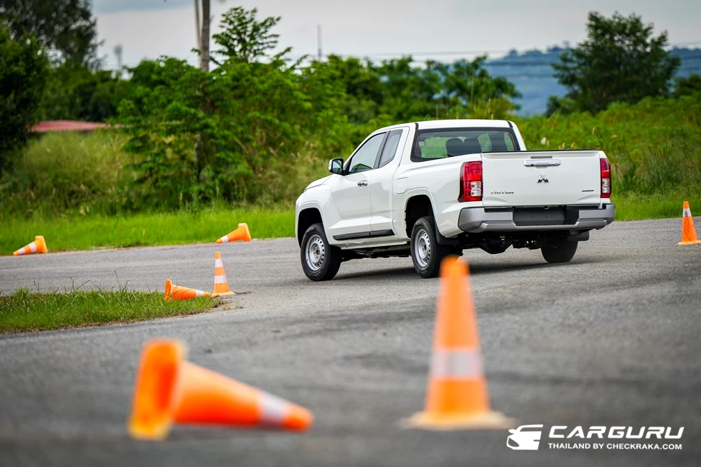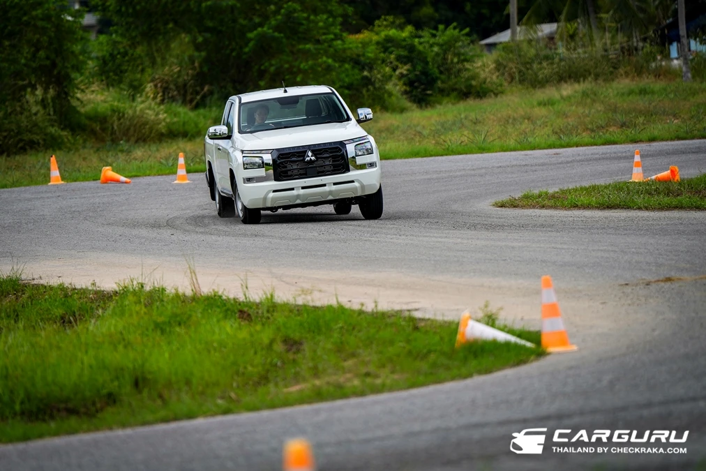 จุดทดสอบขับ All-New Mitsubishi Triton Mega Cab Low Rider เกียร์ธรรมดา ในถนนปิดสั้น ๆ ด้วยการใช้รถ 2 คัน คันแรกมีการบรรทุกของที่ท้ายกระบะขนาด 700 กิโลกรัม และอีกคันเป็นรถเปล่า ใช้การขับผ่านถนนเล็ก ๆ ขดเคี้ยวไปมาและมีการวางแผ่นชะลอความเร็ว เพื่อให้ขับผ่านและจับความรู้สึกของระบบกันสะเทือนของรถทั้ง 2 แบบ