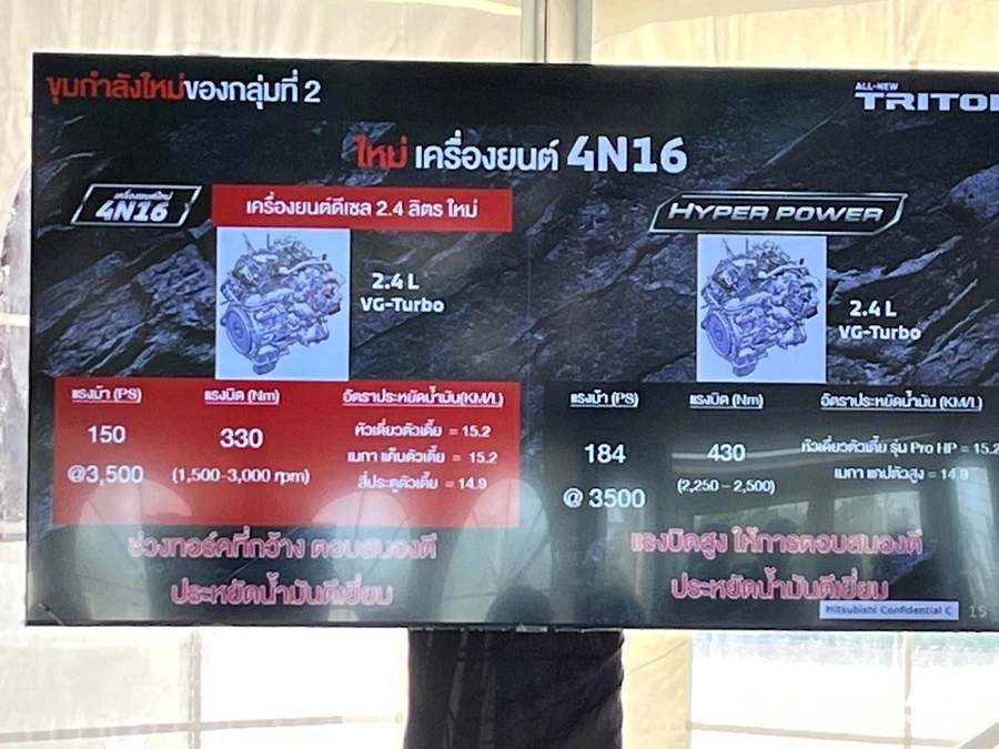 Mitsubishi เปิดตัวกระบะ All-New TRITON ด้วยการนำรุ่น Double Cab 2.4 ULTRA 4WD AT ราคา 1,228,000 บาท รุ่น 4 ประตูยกสูงและหัวเดี่ยว 4X4 มาเป็นรุ่นชิมลางก่อน ส่วนแฟน ๆ หลายคนรอคอยรุ่น All-New TRITON ATHLETE ที่ใช้ขุมพลัง 204 แรงม้า แรงบิดสูงสุด 470 นิวตันเมตร ว่าจะเริ่มจำหน่วยเมื่อไหร่ดี ซึ่งกิจกรรมครั้งก็มีมาจอดโชว์ตัวหล่อแบบยังไม่ได้ลองขับ (สักที) แต่ว่า....มีเซอร์ไพร์สเล็ก ๆ ด้วยการให้ทดลอง All-New TRITON MEGA CAB หรือรุ่น สร้างเนื้อสร้างตัวกับเครื่องยนต์รหัส 4N16 ใหม่ 2.4 ลิตร เสื้อสูบอลูมิเนียมกับพลัง 150 แรงม้า 330 นิวตันเมตร VG Turbo ที่พัฒนาใหม่หลายจุด!