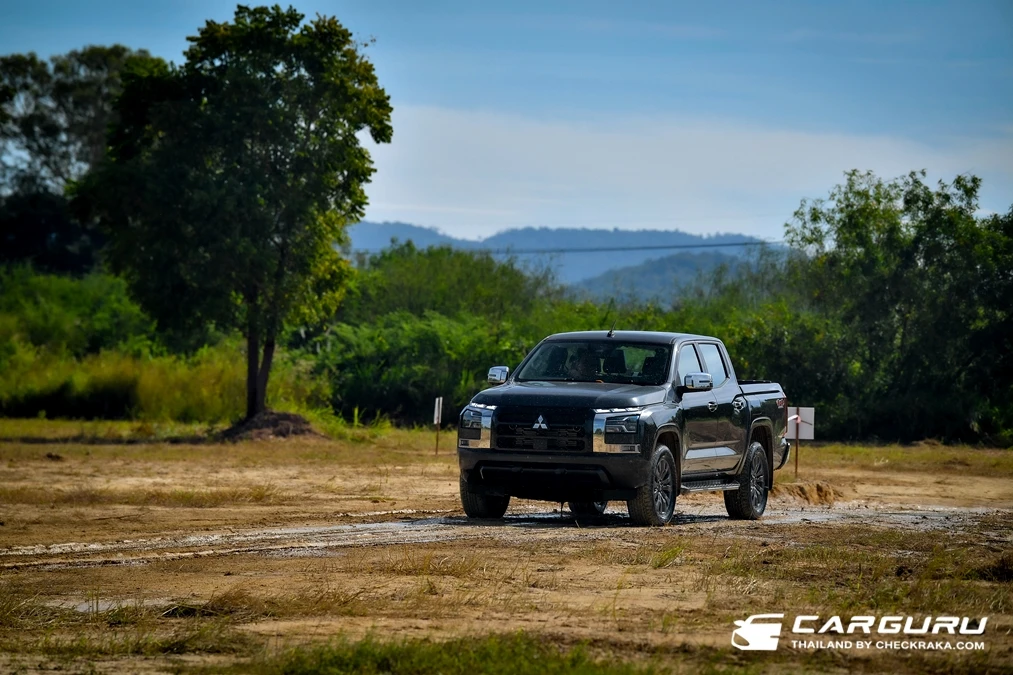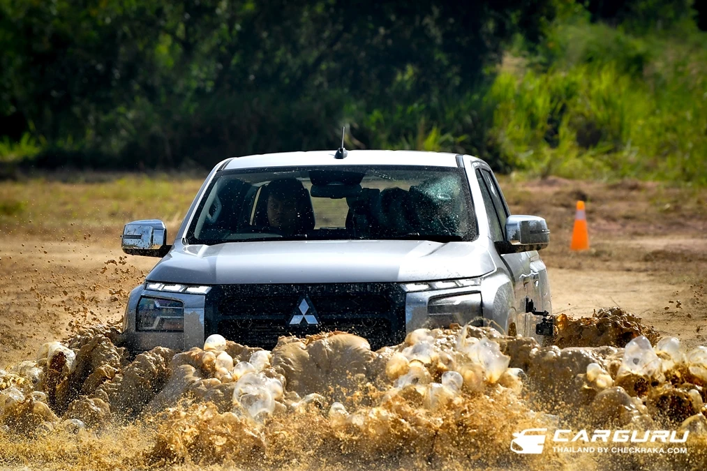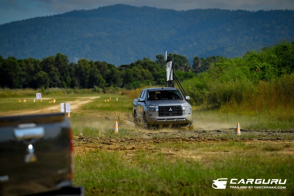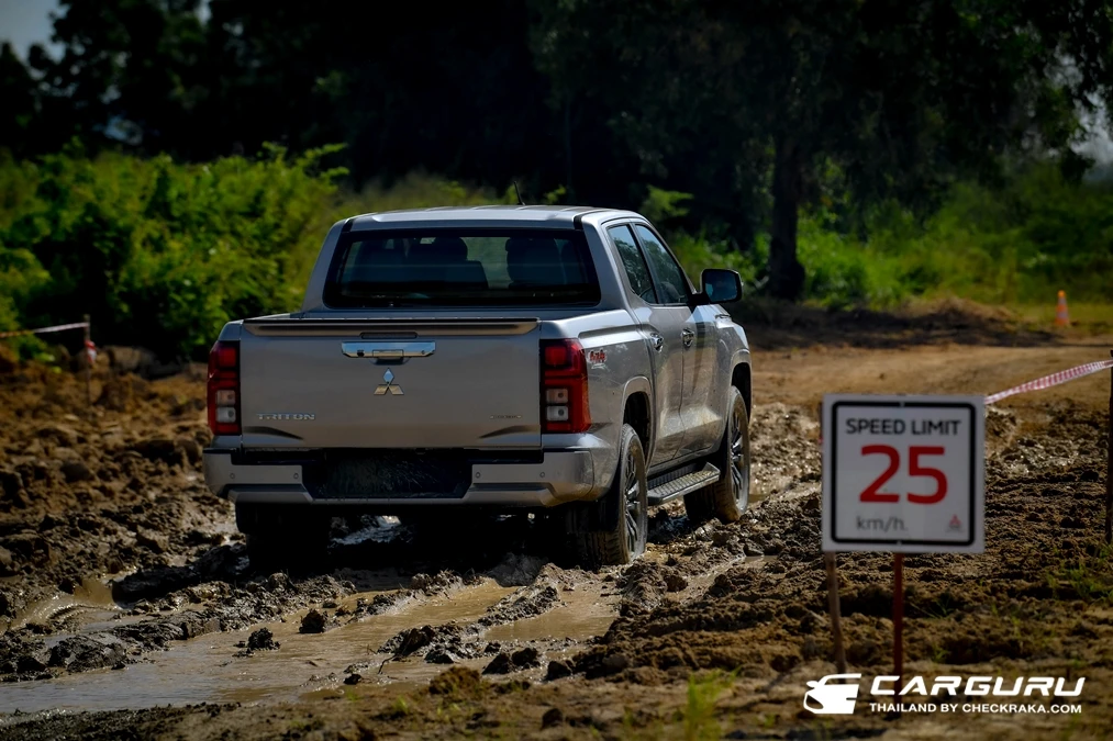 เริ่มลองขับ All-New TRITON Double Cab ULTRA 4WD AT ด้วยการการขับเส้นทางแบบ Off-Road สั้น ๆ ในสามจำลองทางทางฝุ่น ทราย กรวดลอย การกลับรถทางฝุ่นในจุดแคบ ๆ เพื่อลองระบบ ระบบควบคุมการขับเคลื่อนและสมดุลขณะเข้าโค้ง (Active Yaw Control: AYC) รวมถึงการลุยทางโคลนลึก ปีนเนินเอียงสลับและลงไป "อาบน้ำ" ความลึกระดับ 60 เซ็นติเมตร
