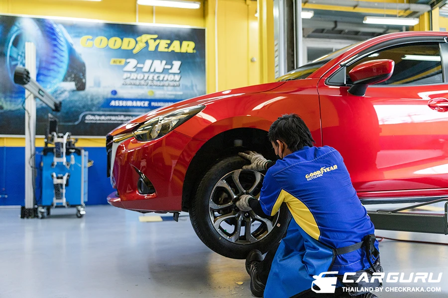 ทีมงานเพจ Car Guru Thailand เว็บไซต์ Checkraka มีโอกาส ทดสอบยางรถยนต์ GOODYEAR ASSURANCE MAXGUARD 2 in 1 Protection ซึ่งเหมาะเป็นยางเปลี่ยนทดแทนให้กลุ่ม อีโคคาร์ รวมไปถึงรถกลุ่ม B และ C เซ็กเม้นต์หลายรุ่น ในการทดสอบรอบนี้เราได้เปลี่ยนให้กับรถมาสด้า 2 ที่ใช้ขนาด 185/60R16 การเปลี่ยนยางใหม่พร้อมรับบริการแบบครบวงจรก็ได้รับการเอื้อเฟื้อสถานที่จากศูนย์บริการ กู๊ดเยียร์ออโต้แคร์ เรเดียลแท็บ นวมินทร์