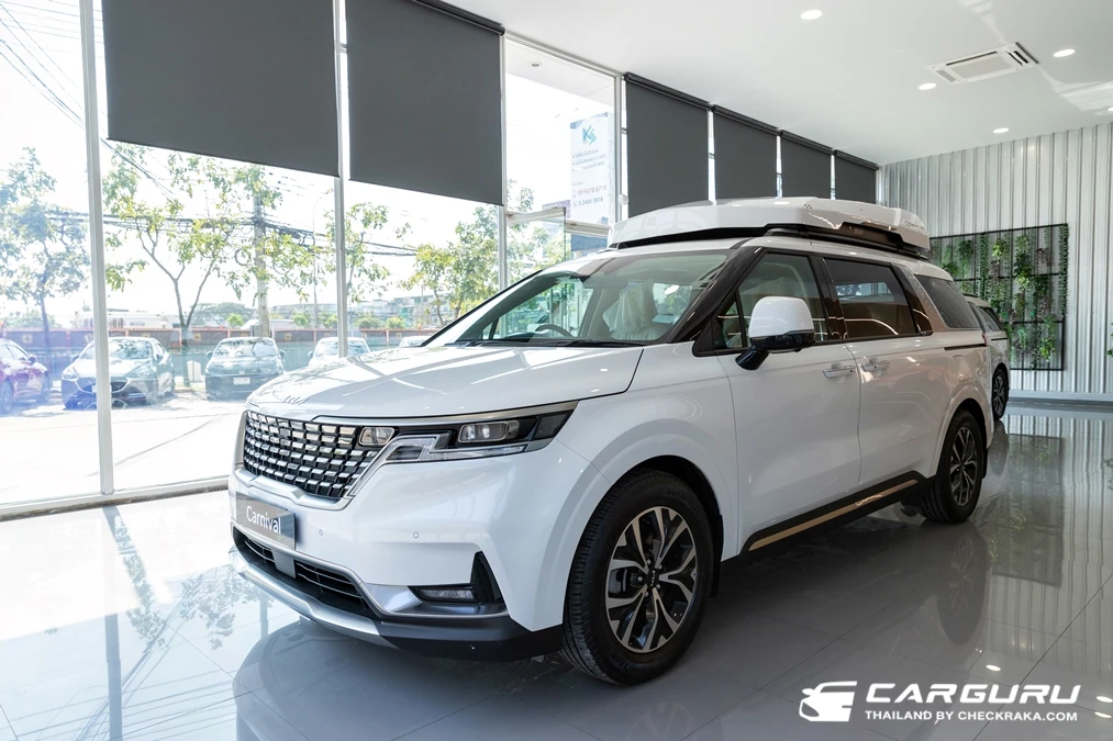 สำหรับตัวกล่องเก็บของนี้สามารถเปิดได้ 2 ฝั่ง (ทีละฝั่ง) พร้อมกุญแจล็อค ซึ่งการติตตั้งจะแนบกับตัวรถพร้อมกับใช้ยางรองรับกันรอยระหว่างตัวหลังคากับกล่องอีกด้วยซึ่งการรับน้ำหนักจะยึดผ่านแร็คหลังคา และยังสามารถติดตั้งใน KIA Carnival ได้ทุกรุ่นย่อยแม้แต่รุ่นเริ่มต้น LX แต่มีข้อควรระวังในการติดตั้งรุ่น SXL มีซันรูป ห้ามเปิดหลังคาเด็ดขาด เพราะอาจเกิดความเสียหายกับกระจกหลังคาได้ครับ และยังมีชุดตกแต่งเพิ่มความพรีเมียมใน KIA Carnival ยังมีให้เลือกอีกเพียบ เช่น คิ้วกันสาด, บันไดไฟฟ้ากาง-พับเก็บอัตโนมัติ, แผ่นสคับเพลตขอบประตู กระจังหน้า เป็นต้น