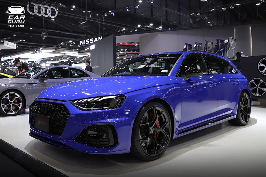 สำหรับใครที่ชอบความแรง Audi มีการจัดแสดงรถยนต์ High performance RS Model ด้วยนะครับ กับรุ่น Audi RS 4 Avant quattro competition ดีไซน์ให้อารมณ์แบบพ่อบ้านสายซิ่ง ลงตัวมากๆ ครับ ตัวรถมาพร้อมสมรรถนะอันโดดเด่น และดุดันจากขุมพลังเครื่องยนต์เบนซิน V6 biturbo พลัง 450 แรงม้า แรงบิดที่ 600 นิวตันเมตร อัตราเร่งจาก 0-100 กิโลเมตรต่อชั่วโมง ในเวลาเพียง 4.1 วินาที ราคาเริ่มต้น 6,499,000 บาท