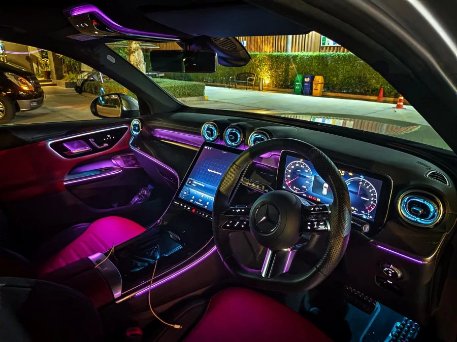 ก่อนว่าเรื่องการขับมาดูภายในห้องโดยสารก่อน แน่นอนว่าทุกอย่างก็เป็นไปตามซีดานคลาส C ต่างชัดเจนหน่อยก็ทรงพวงมาลัยท้ายตัด จริงๆ ดูทะมัดทะแมงกว่า รวมไปถึงการออกแบบตำแหน่งปุ่มทัชต่างๆ บนพวงมาลัย ส่วนตัวชอบจอทัชสกรีนขนาดใหญ่กลางคอนโซลดูเข้าใจและใช้ง่าย แต่รอยนิ้วมือก็ทิ้งไว้มากเช่นกัน จริงๆ การออกแบบให้เรียบง่ายแต่สะดวกต่อการใช้งานตามแนวคิด ‘Zero Layer’ เป็นอะไรที่ยอดเยี่ยม ใช้ได้ดีจริง แทบไม่เหลือปุ่มกดไว้แล้ว อย่างไรก็ตาม การได้ AMG package ทั้งภายนอกและภายในทำให้รถดูสปอร์ตและน่าขับมากยิ่งขึ้น รวมทั้งมีโปรแกรมขับออฟโรด Off-Road Engineering Package ไว้ให้ขับลุยทางฝุ่น ดิน ฯลฯ แต่ส่วนตัวก็ไม่เคยเห็นใครยอมเอาเอสยูวีหรูไปลุยให้เลอะ แม้มีระบบรองรับให้ก็ตาม