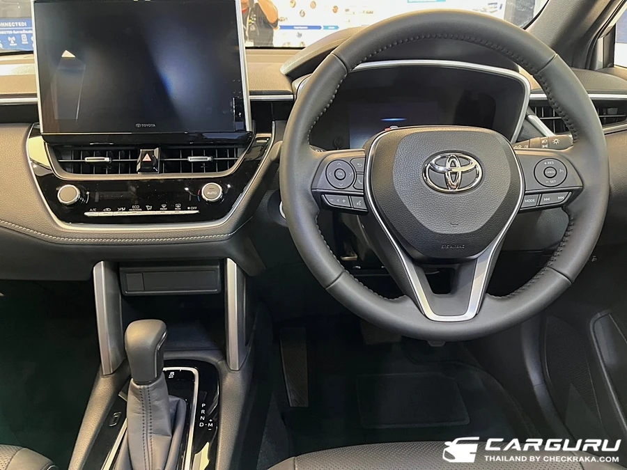 All New Toyota Yaris Cross HEV Premium Luxury รถครอบครัวเซฏเมนต์เล็กลงมาแต่ราคาต่างกัน 100,000 บาท ได้ออปชั่นแบบจัดเต็มครบถ้วน และแม้จะเป็นรถคันเล็กกว่า แต่การออกแบบพื้นที่ในห้องโดยสารกลับกว้าง โปร่งโล่ง เพียงแค่ตัวเบาะนั่งไม่ค่อยพรีเมี่ยมเท่า (เท่าชื่อ) ไหร่นัก เนื้อสัมผัสออกแข็ง ๆ ไม่ต่างกับรุ่นวีออสที่คุ้มเคย กลับมาที่ออปชั่นที่มีครบเพราะเป็นรุ่นท็อปสุด จึงเป็นรถที่หลายคนเลือกซื้อเพราะคุ้มค่าครบทั้ง สมรรถนะเครื่องยนต์ไฮบริด ราคา ออปชั่น สำหรับยารีส ครอส มีจุดน่าสังเหตุคือ ฟิวลิ่งการขับขี่ยังแปลก ๆ หากเทียบกับ Corolla Cross หรือแม้จะเป็นรถคู่แข่งอื่น ๆ ในระดับเดียวกัน อย่างเช่น พวงมาลัยมีระยะฟรีเยอะ ไม่คมกระชับเท่าที่ควร ช่วงล่างยังไม่หนึบแน่นมากเท่าไหร่ ซึ่งก็เป็นไปตามรถเซกเมนต์ระดับนี้