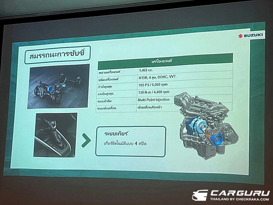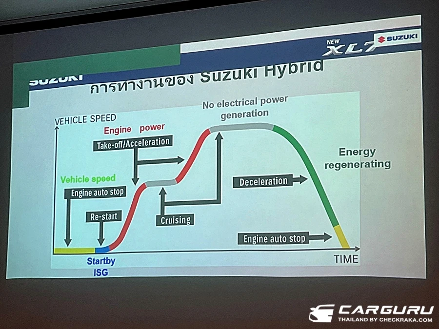 New Suzuki XL7 ปรับปรังเครื่องยนต์ใหม่เพิ่มเติมระบบ Hybrid ที่เน้นการใช้งานมอเตอร์ไฟฟ้าแบบ ISG เป็นการเสริมแรง เครื่องยนต์ (Mild Hybrid) 1.5 ลิตร DOHC VVT 105 PS แรงบิด 138 นิวตันเมตร เกียร์ 4 จังหวะ ขับเคลื่อนล้อหน้า พร้อมด้วยการใช้ชุดมอเตอร์ไฟฟ้าที่ติดตั้งแบบ "ไดชาร์จ" ขับโดยระบบสายพาน ทำหน้าที่ทั้งมอเตอร์ขับเคลื่อนขนาด 1.8 kWh 2 แรงม้านิด ๆ แรงบิด 50 นิวตันเมตร, ชาร์จไฟฟ้าเข้าแบตเตอรี่ ขนาด 10 Am / 12 kWh (ใหญ่กว่าในเออติก้า 6 Am /10 kWh) กับค่าใช้จ่ายแบตฯ ราว ๆ 42,000 บาท และมอเตอร์สตาร์ท จากทริปนี้เดินทาง 4 คน ต่อ 1 คัน บนเส้นทางกทม.-สวนผิ้งราชบุรี
