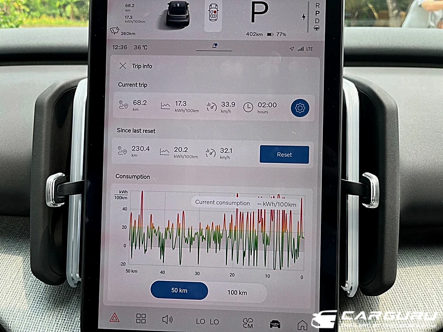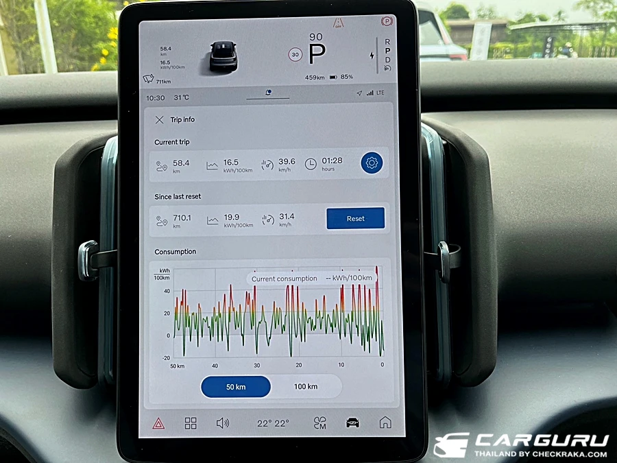 อัตราสิ้นเปลืองไฟฟ้าบนมาตรวัดหรือการใช้พลังงานนั้นรุ่น Single Motor จะประหยัดกว่าเป็นธรรมดาอยู่ที่ 16.5 kWh/100 ส่วนรุ่น Twin Motor อยู่ที่ 17.3 kWh/100 ผลจากการขับขี่แบบทดสอบด้วยการเร่งบ่อย ๆ จอดถ่ายรูป และลองอัตราเร่งออกตัว จึงอาจไม่ใช่ตัวเลขใช้งานทั่วไปที่แท้จริง หากขับขี่ปกติคาดว่าน่าจะประหยัดกว่านี้ครับ เพราะเมื่อลองเทียบดูแล้ว 272 แรงม้า หรือ 428 แรงม้า ใช้ไฟระดับนี้นับว่าไม่กินมากเท่าไหร่ แลกกับการขับขี่และสมรรถนะที่ดีขนาดนี้ และมีระยะทางขับขี่ไกลพอสมควร