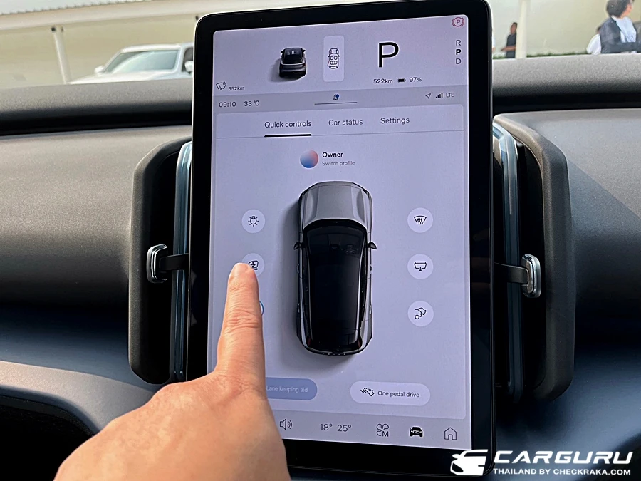 การปรับกระจกมองข้างต้องเข้าในจอกลางโดยกดรูป รถที่เมนูด่านล่างและไปจิ้มที่รูปกระจกมองข้าง และมีคำแนะนำให้ด้วย การปรับจะใช้ปุ่มสวิตช์บนพวงมาลัยขวามือได้เลย และเลือกปรับฝั่งซ้านหรือขวาด้วยการกดบนจอเช่นกัน นอกจากนี้ การเลือกเปิด-ปิดระบบ Keeplane และ One-Pedle ก็เลือกในจอนี้ด้วย