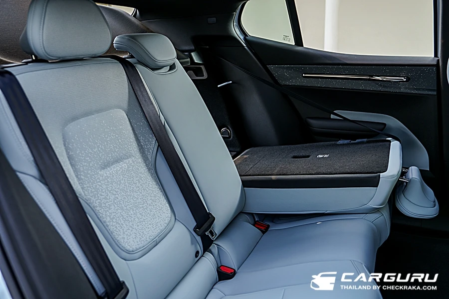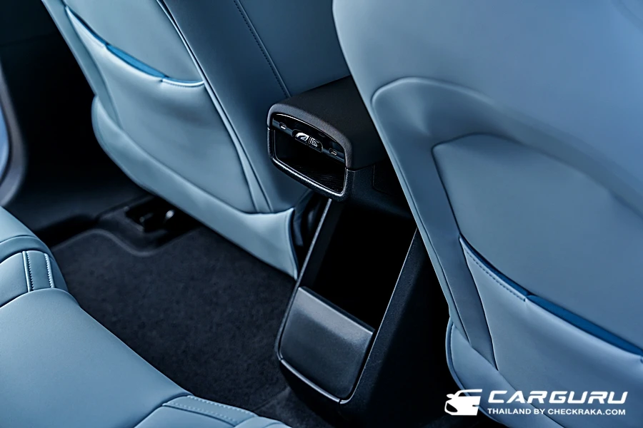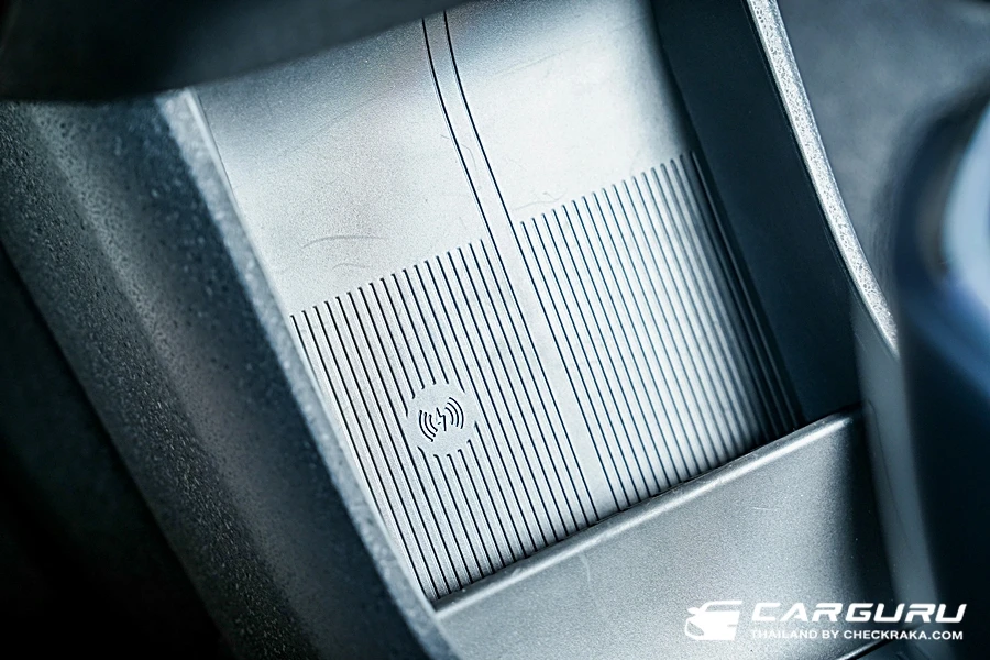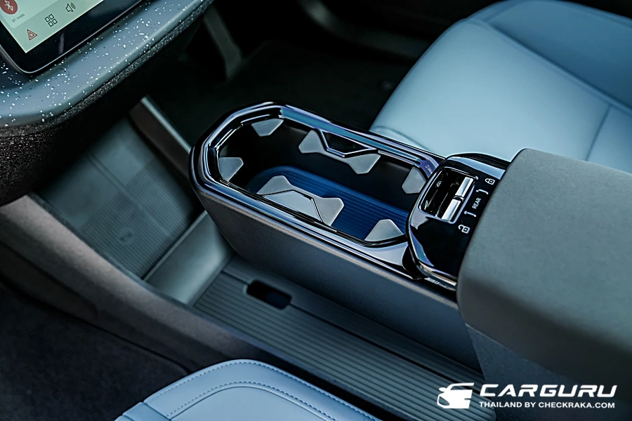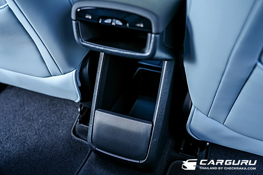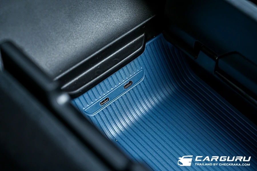 คอนโซลกลางมีที่วางแก้วน้ำ 2 ตำแหน่งพร้อมสวิตช์กระจกไฟฟ้าที่มีแค่ 2 ฝั่ง อ่าว! ยังไง ตรงประตุก็ไม่มี แต่ว่าสวิตช์ 2 ตัวนี้สามารถควบคุมกระจกไฟฟ้าได้ทั้ง 4 บาน โดยเลือกกด "REAR" ก็เลื่อนกระจกคู่หลังได้เลย ขยัลลงมาอีกนิดเป็นสวิตช์ล็อค-ปลดล็อคประตู และมีที่เท้าแขนกับกล่องใส่ของ ส่วนล่างของคอนโซลกลางนี้มีที่วางสิ่งของและเปิดแผ่นปิดออกมาก็จะเจอที่วางของอีกพร้อมกับช่องจ่ายไฟ UCB-C ทางใกล้ ๆ กันส่วนหน้าก้ยังมีที่ชาร์จไรสายอีก 1 ตำแหน่งด้วย ดูซับซ้อนแต่ก็มีให้ใช้งานได้คลอบคลุมดีครับ