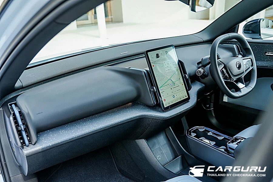 จอทัชสกรีนขนาด 12.3 นิ้วแนวตั้ง นับเป็นศูนย์กลางในการใช้งานระบบต่าง ๆ ของรถยนต์ รวมไว้ในจอทั้งระบบแอร์ ปรับกระจกมองข้างที่มีคำแนะนำให้ การเลือกเปิด-ปิดระบบช่วนเหลือขับขี่ต่าง ๆ ระบบควบคุมเครื่องเสียง ไฟหน้า ไฟภายในรถ ตั้งค่าการชาร์จไฟ ดูข้อมูลการขับขี่ และในรุ่นที่เป็น Twin Motor จะมีเลือกโหมด Perfomance All-Wheel-Drive เปิดระบบขับเคลื่อน 4 ล้อ ตลอดเวลา (ปกติจะเป็นเน้นส่งกำลังล้อหลังเพื่อประหยัดไฟฟ้า)