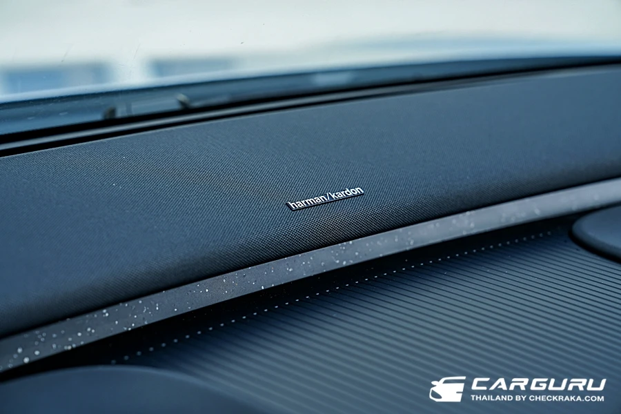 แต่ยังมีปุ่มการควบคุมและสั่งงานแสดงผลเป็นแท็บข้อความและปุ่มเข้าเมนูลัด หรือจะเปลี่ยนมุมมองเป็นแบบ “Calm view” เพื่อเลือกแสดงเฉพาะข้อมูลสำคัญก็ทำได้ และระบบเครื่องเสียงจาก Harman Kardon Premium Sound แอมปลิไฟเออร์ 1040 วัตต์ พร้อมลำโพง 9 ตัว รวม คอมแพค วูฟเฟอร์ และซับวูฟเฟอร์ กระหึ่มมาก ๆ