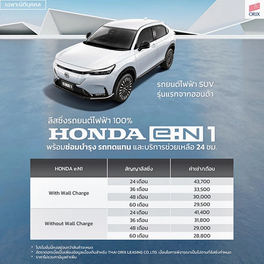ตัวอย่างราคาเช่าใช้รถ Honda eN1