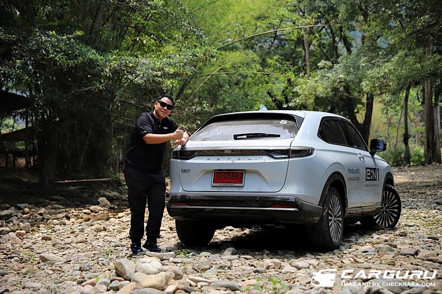 อัตราเร่งแรงตามเท้าแต่ว่าไม่ถึงกับกระชาก จากการปรับคันเร่งให้สมู้ทนุ่มนวล ไม่ต้องปรับตัวมาก สามารถกระโดดจากรถสันดาปมาขับ eN1 ได้โดยไม่ปรับตัวใดใดเลย แม้จะปรับคันเร่งให้การใช้งานนุ่มนวล แต่เมื่อต้องอัตราเร่งแบบจัดเต็ม กลับเร่งได้แบบตามเท้าทันใจ ไม่มีการรอรอบตามสไตล์รถยนต์ไฟฟ้า ช่วงล่างนุ่มนวลเป็นหลัก และให้ความกระชับพอมั่นใจได้ในทุกสภาพถนน แม้ว่าแบตฯ ใต้ท้องห่างจากพื้น 135 มม. และจะดูต่ำลงมากว่า HR-V แต่ว่าได้ลองขับผ่านเส้นทางกึ่งออฟโร้ด ก็สามารถขับไปได้สบาย