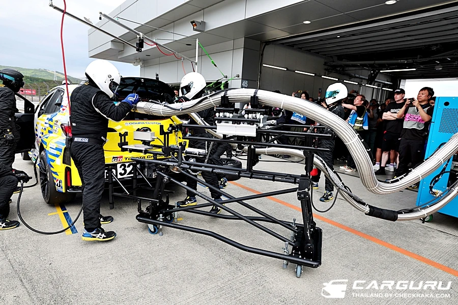 นอกจากนี่เราพัฒนาระบบการเติมที่ใใช้เวลาน้อยลง ถ้าวิ่ง 1 ชม.ต้องมาเติม 1 ครั้งให้เต็ม ซึ่งต่างจากเดิมที่จะวิ่งได้แค่ 20 นาที และต้องออกไปเติมแก๊สนอกสนามใช้เวลาร่วม 10 นาที แต่ตอนนี้ใช้เวลาเติมไม่ต่างจากเติมน้ำมันใน pit เลย พอแข่งร่วมกับรถแข่งคันอื่น คุณอาจจะไม่รู้เลยว่ารถแข่งหมายเลข 32 ใช้ไฮโดรเจน