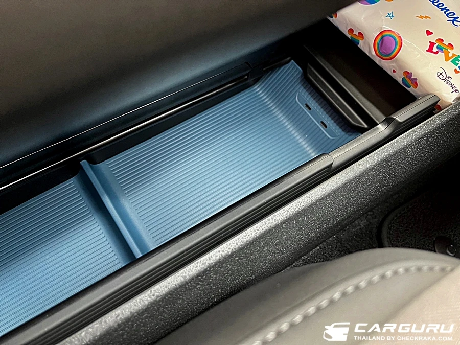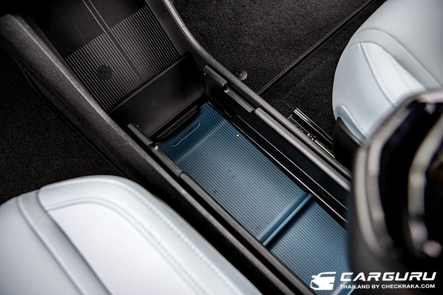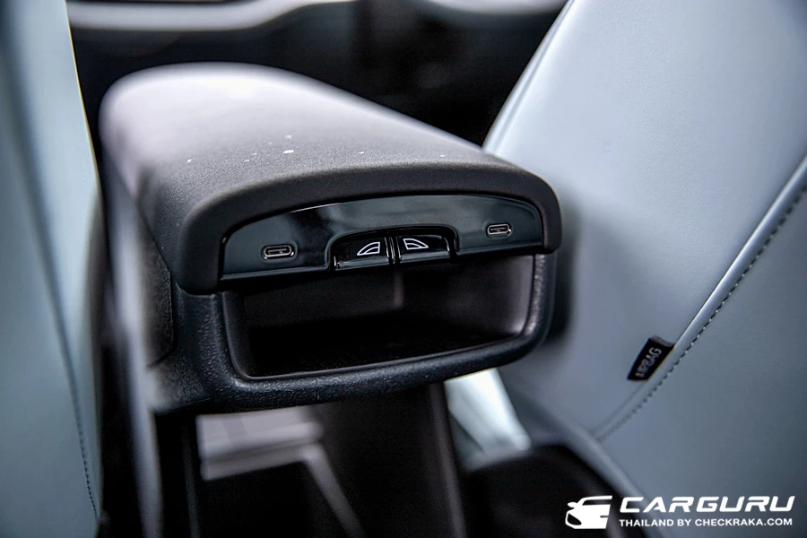 แม้จะมีที่วางของข้างใต้แบบเปิด-ปิดซ่อนของได้หรือจะเสียบ USB-C ได้ แต่ก็วางของและหยิบไม่ถนัดหนัก แต่ส่วนของที่วางสมาร์ทโฟนพร้อมระบบชาร์จไร้สายนั้นถือว่าดีครับ วางแล้วนิ่งไม่กลิ้งไปมาเวลาซิ่ง ๆ และยังพอมีอีกช่องทางขวาที่ไม่มีตัวชาร์จเอาไว้วางได้อีกเครื่อง และที่ส่วนท้ายของที่เท้าแขนมีจุดจ่ายไฟ USB-C