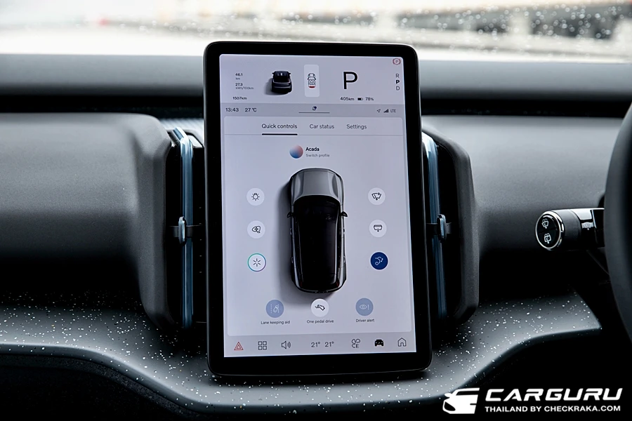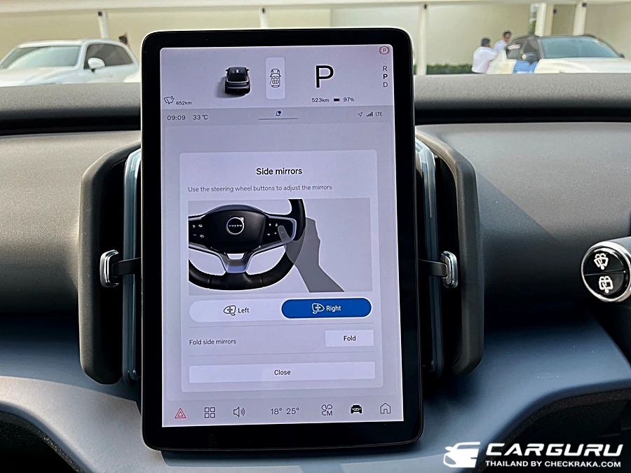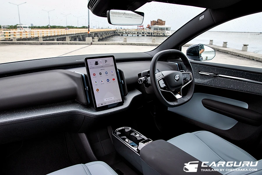 Volvo EX30 จะใช้จอกลางรวมทุกสรรพสิ่ง ตั้งแต่การแบ่งส่วนบนสุดใช้เป็นเป็นมาตรวัดที่บอกความเร็ว แสดงผลระบบต่าง ๆ ในการขับขี่ เช่น ระบบเตือนออกนอกเลนหรือระบบควบคุมความเร็วแปรผัน สัญลักษณ์เตือนต่าง ๆ ระดับแบตเตอรี่คงเหลือ ระยะทางที่วิ่งได้ ระยะทางรวมและระยะทางต่อทริป เป็นต้น จะถูกย่อรวมส่วนแถบบนของจอกลางนี้ แม้จะมองยากหน่อย แต่ข้อดีก็คือ มองที่เดียวเห็นควบคุมไปยังส่วนสั่งการและฟังก์ชั่นอื่น ๆ ด้วย แรก ๆ จะมองยากหน่อย ใช้ยากหน่อย เล่นบ่อย ๆ เดี๋ยวชิ้นเอง