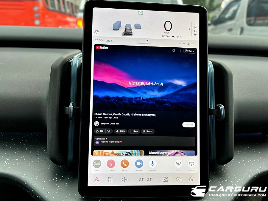 ส่วนการใช้สาย USB-C นั้นจะไม่มีการเชื่อมต่อระบบในโทรศัพท์ให้ เป็นเพียงการชาร์จไฟเท่านั้น สำหรับผมมันก็มีข้อดีอยู่บ้างนั่นคือ การใช้งานที่ต้องผ่านตัวโทรศัพท์น้อยลง เป็นอิสระไม่ต้องคอยระวังหรือเปิด-ปิด ฟังก์ชั่นบางระบบที่ใช้งานผ่านหน้าจอของรถ หรือการต้องสลับการเชื่อมต่อของผู้ใช้งานเมื่อต้องเปลี่ยนผู้ขับขี่แต่ละคน และหากต้องการดูหนังฟังเพลงก็เพียงเปิดระบบไวไฟ แชร์ไปยังจอรถก็สามารถเปิดบราวเซอร์ที่อยู่บนจอได้ทันที แต่มีข้อแม้คือ หากจะฟังเพลงหรือดูหนังจะต้องจอดสนิทเท่านั้น หากรถเคลื่อนที่ระบบจะตัดออกทันที!..นับว่าเป็นไปตามมาตรฐานความปลอดภัยสากลนั่นเองครับ