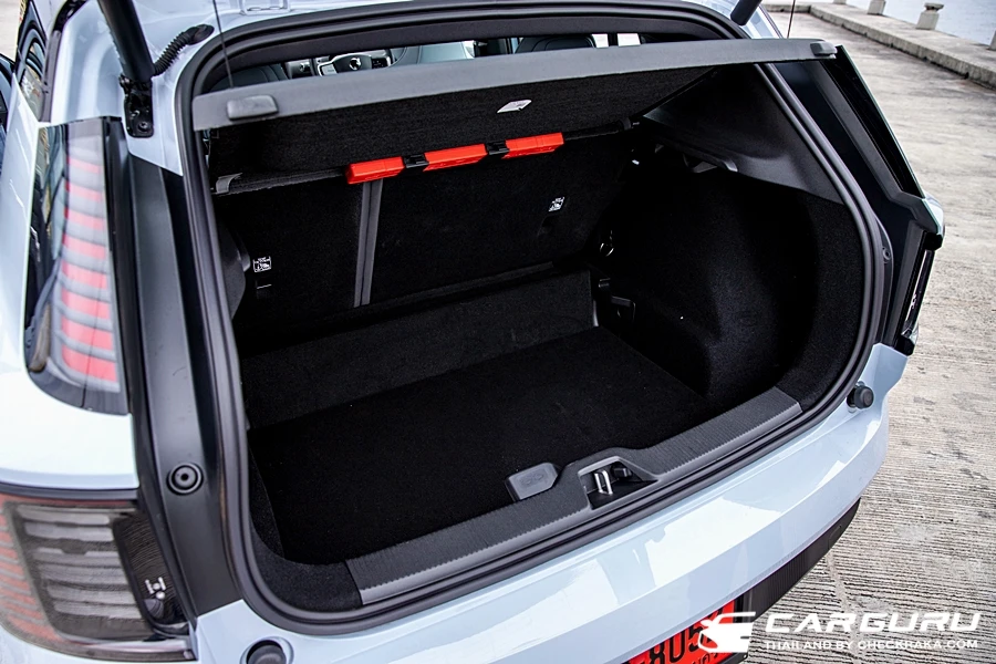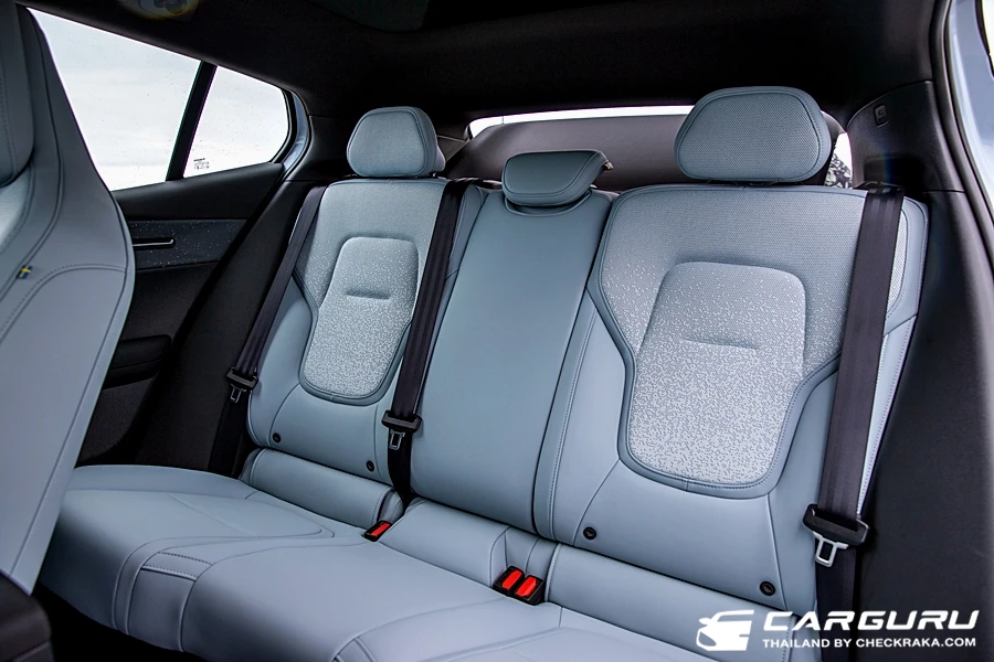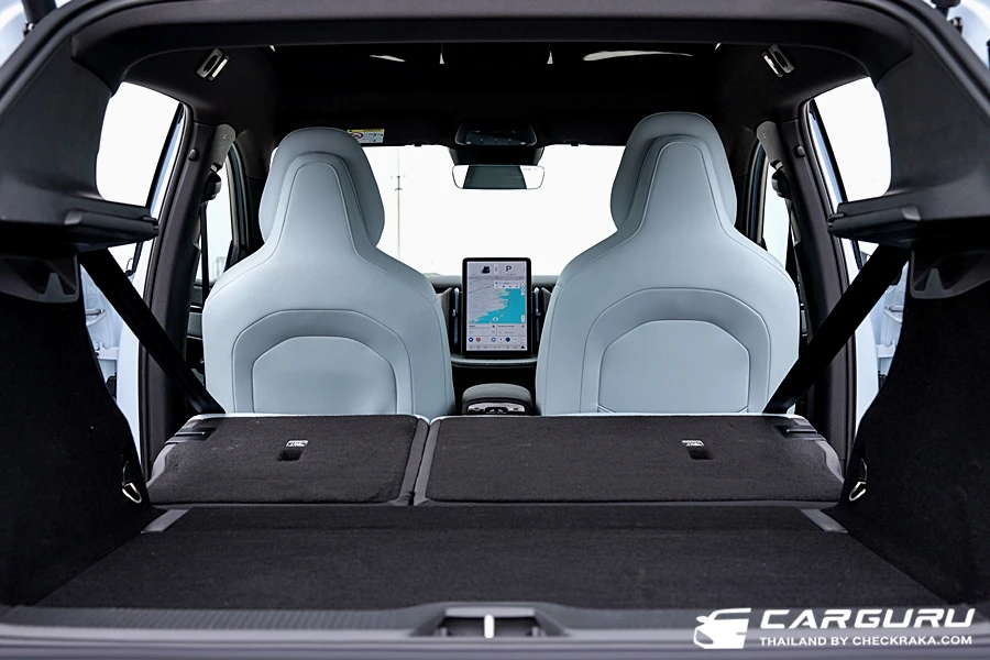 สำหรับพื้นที่ภายในห้องโดยสารนั้นส่วนด้านหน้าให้ความสะบายและมีพื้นที่เหลือ ๆ ไม่อึดอัดมากนักเมื่อเทียบกับเซกเมนต์ของที่ EX30 วางเอาไว้ ถือว่าลงตัวไม่เล็กไม่ใหญ่ แต่ไม่อึดอัดนั่งสบาย แต่เมื่อลองนั่งด้านหลังหากปรับเบาะหน้าแบบนั่งขับได้ปกตินั้น จะเหลือพื้นที่วางขาน้อยกว่าในรถบางรุ่นหรือ "แคบนั่นแหละ" ทำให้นั่งไม่สบาย หากจะนั่งได้สบายจะต้องเลื่อนเบาะหน้าให้เหลือพื้นที่ และผู้ขับหรือคนนั่งหน้าอาจจะต้องปรับท่านั่งใหม่อีกนิด เป็นการเอื้อเฟื้อให้คนผู้โดยสารตอนหลังด้วยครับ แต่ว่าในความแคบของเบาะหลังนั้น ส่วนของพื้นที่เพดานเหนือศีรษะกลับมีช่องว่างให้โปร่งโล่งไม่อึดอัด เพราะมีหลังคากระจกยาวแบบพาโนรามิค และเบาะยังให้สัมผัสนุ่มสบาย นับว่าพอที่จะชดเชยกันได้บ้าง ส่วนพื้นที่เก็บของท้ายรถกลับกว้างกว่าที่คิด และยังจุของได้เกินคาด และหากพับเบาะก็ยิ่งมีพื้นที่เพิ่มอีกเพียบ