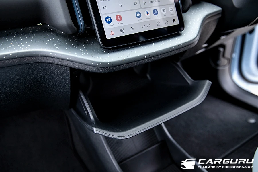 ของสำคัญมากสำหรับโผมมมม......ก็ที่วางแก้วน้ำหรือขวดน้ำมีเพียง 2 ที่ตรงเท้าแขนด้านหน้าเท่านั้น ส่วนด้านข้างไม่มี ช่องเก็บของแผงประตูทั้ง 4 บานก็ไม่สามารถวางพวกแก้วหรือขวดได้ เพราะไม่ทำช่องหรือร่องเอาไว้ให้ เมื่อวางขวดก็จะกลิ้งไปมาไม่มีที่ล็อคเป็นเพียงช่องยาว ๆ สำหรับใส่เอกสารหรือของทรงแบนยาว ๆ เท่านั้น และเบาะตอนหลังไม่มีที่วางแขนจึงไม่มีที่วางแก้วน้ำเป็นโดยปริยายครับ ซึ่งถ้ามองว่า EX30 ออกแบบมาเน้นสมรรถนะการขับขี่ ระบบความปลอดภัย หรืออาจจะเน้นชาวโสด วัยรุ่นที่มีไลฟ์สไตล์ที่แตกต่าง ๆ นั่งคนเดียวหรือ 2 คนเป็นหลัก จึงไม่เน้นสิ่งอำนวความสะดวกอื่น ๆ นอกจากเรื่องของการขับขี่มากนัก หากเพิ่มจุดวางขวดหรือแก้วน้ำได้จะยิ่งช่วยเสริมความสะดวกสบายให้กับสมรรถนะสูงคันได้อย่างครบถ้วนเลยครับ