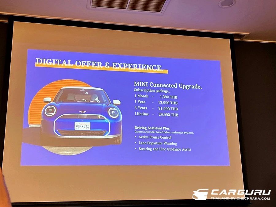รวมถึงฟังก์ชันจอดรถอัตโนมัติอย่าง Parking Assistant และแพ็คเกจ Driving Assistant ซึ่งสามารถเลือกอัปเกรดเป็น Driving Assistant Plus ที่มาพร้อมระบบควบคุมความเร็วอัตโนมัติ (Adaptive Cruise Control) โดยลูกค้าสามารถเลือกสมัครได้ในแบบ 1 เดือน 1 ปี 3 ปี และตลอดอายุการใช้งาน ส่วนฟีเจอร์กุญแจรถดิจิทัล MINI Digital Key Plus ยังช่วยเพิ่มความสะดวกสบายอีกระดับ ด้วยการเปลี่ยนสมาร์ทโฟนและสมาร์ทวอชให้เป็นกุญแจรถ ซึ่งสามารถเปิดใช้งาน Welcome Light ได้โดยอัตโนมัติเมื่อเจ้าของรถอยู่ในระยะ 3 เมตรจากตัวรถ และสามารถปลดล็อคประตูอัตโนมัติเมื่อเดินเข้ามาในระยะ 1.5 เมตร รวมไปถึงการสตาร์ทเครื่องยนต์เมื่อนั่งอยู่ในตำแหน่งพร้อมจะออกเดินทาง นอกจากนี้ยังสามารถส่งต่อ Digital Key ให้เพื่อนหรือคนในครอบครัวได้อย่างง่ายดายและปลอดภัย