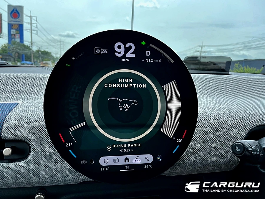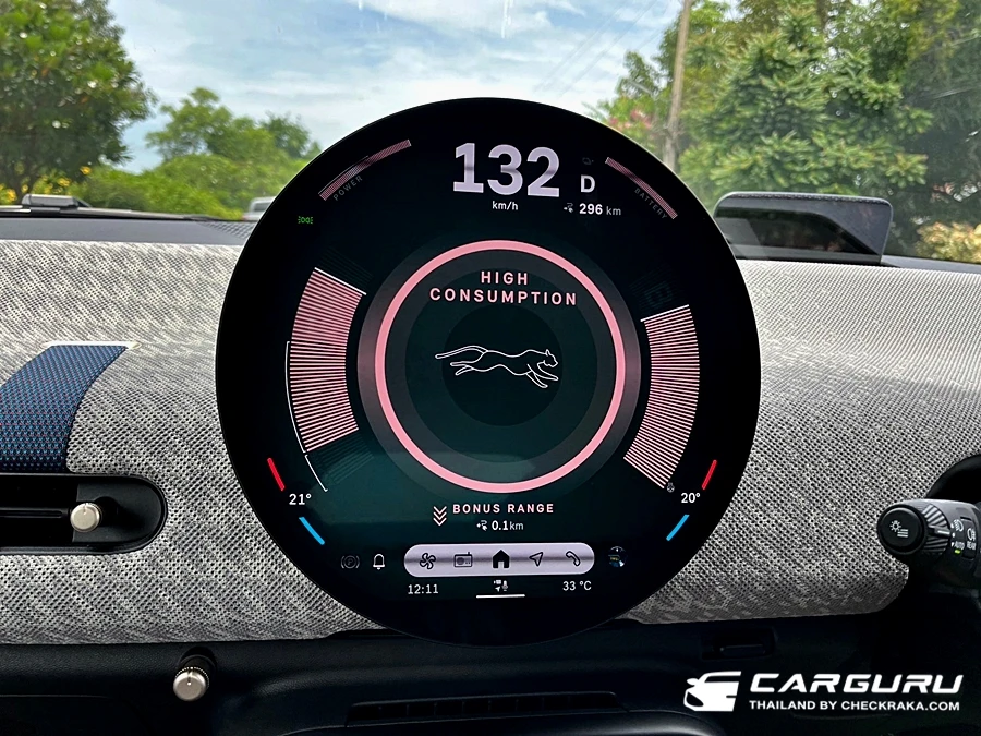 การจัดสรรใช้พลังงานของ The New MINI Cooper SE ทำได้ดี จากจุดเริ่มต้น BMW Group Thailand Training Centre บางกะดี อำเภอเมืองปทุมธานี ถึงร้าน The Barnery หนองแซง สระบุรี ระยะทางไป-กลับ จากแบตเตอรี่ประมาณ 97% ระยะทางที่ขับได้ 313 กม. รวมระยะทางทั้งหมดเฉพาะคันที่ขับนั้น 171.7 กม. เมื่อกลับถึงจุดเริ่มต้นคงเหลือที่ 57% และระยะทางคงเหลือ 240 กม. และค่าพลังงานที่ใช้เฉลี่ยรวมเพียง 12.3 kWh/100 กม. เท่านั้น นับว่าประหยัดไฟเกินคาดเมื่อเทียบกับพลังมอเตอร์ไฟฟ้าระดับ 218 แรงม้า แรงบิด 330 นัวตันเมตร ถือว่าใช้พลังงานไปได้อย่างคุ้มค้ามาก ๆ ครับ