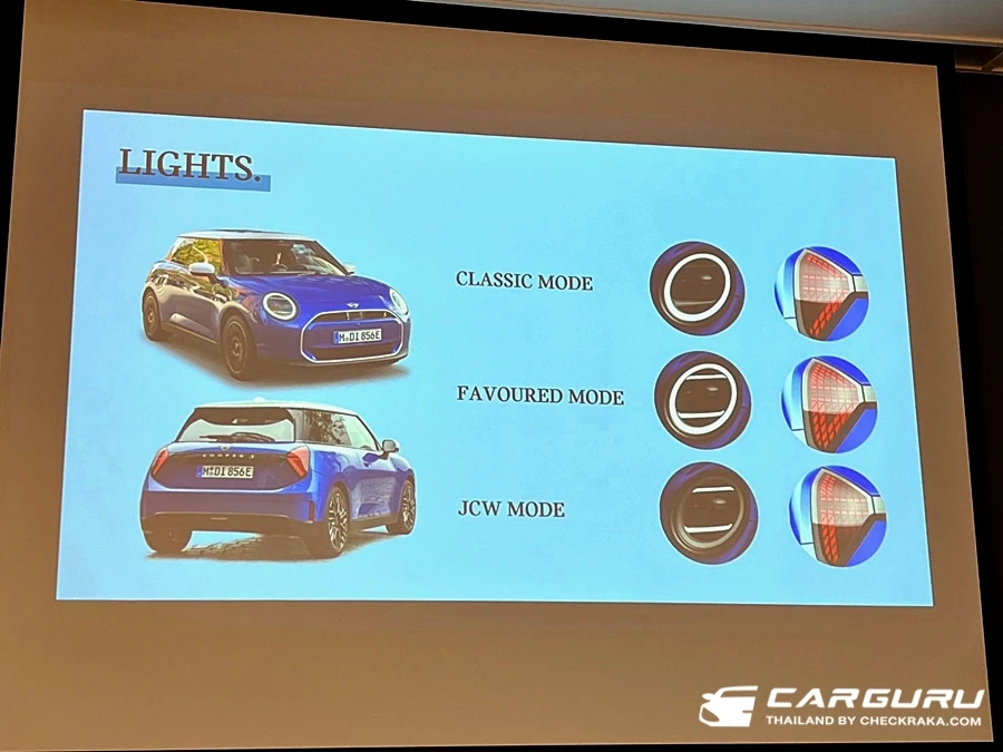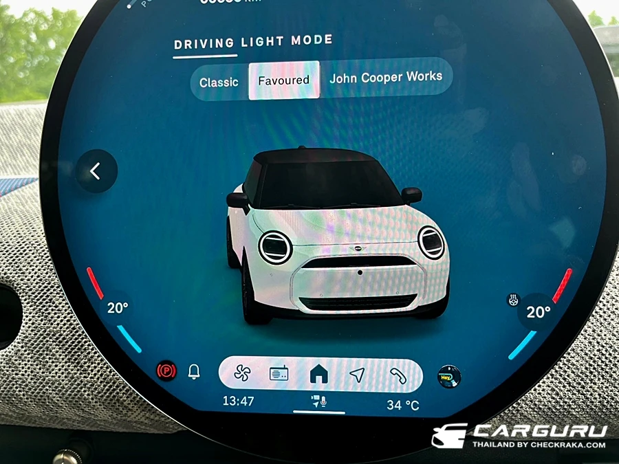 ปรับโหมดเพื่อเลือกแสงและเสียงในรถได้ 7 โหมด โดยเฉพาะ ‘Go-Kart Mode' จะเปลี่ยนชุดสีหน้าจอเป็นสีดำ Anthracite ผสมกับสีแดง และระบบไฟ ambient light สีแดง เติมความดุดันให้เข้ากับการขับขี่ในแบบสปอร์ตด้วยเสียงเครื่องยนต์จากรุ่นจอห์น คูเปอร์ เวิร์คส์ ที่ปรับแต่งมาเพื่อสร้างความเร้าใจโดยเฉพาะ