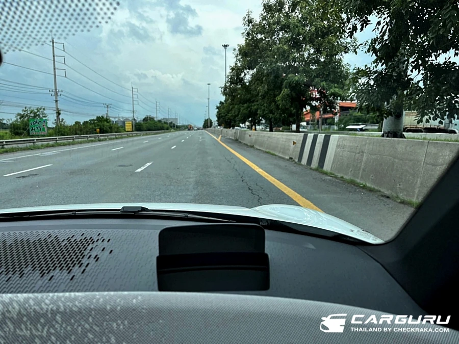 ระบบความปลอดภัยที่ได้ลองใช้ก็มีระบบเตือนพร้อมดึงกลับเมื่อออกนอกเลน ทำงานได้สมูทไม่กระชากมากนัก ระบบควบคุมความเร็วแปรผันก็ให้ความสมูทเช่นกัน จะเร่งหรือเบรก ๆ มากระชาก ไม่มึนหัว และทำงานแม่นยำมาก ๆ แต่ติดตรงระยะห่างระหว่างคันหน้าที่เยอะพอสมควรและแอบเสียดายที่ยังหาปุ่มปรับระยะไม่เจออีกด้วย และน่าเสียดายที่ไม่มีกล้องรอบคัน มีเพียงกล้องมองถอยหลังกับเส้นกะระยะเซ็นเจอร์ช่วยจอดไว้ดูเท่านั้นครับ