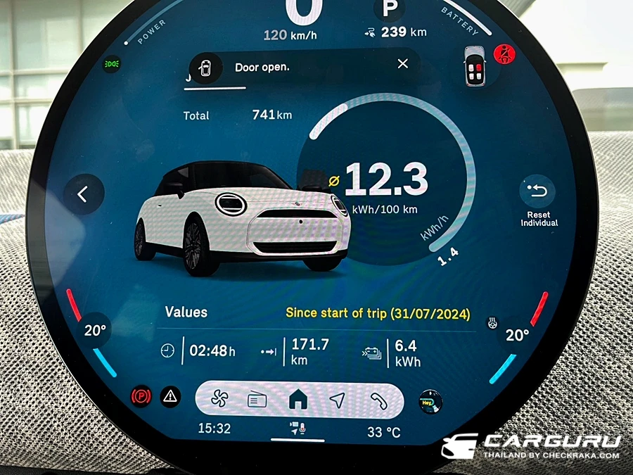 The new Mini Cooper SE รถยนต์ไฟฟ้าน้องเล็กอับเกรดเพิ่มพลังและระยะวิ่งมอเตอร์ไฟฟ้ากำลังสูงสุด 218 แรงม้า แรงบิด 330 นิวตันเมตร ความจุ 54.2 kWh หรือ 402 กม. WLTC ทดสอบเดินทางไปกลับ BMW Group Thailand Training Centre ปทุมธานี - The Barnery เดอะ บาร์นเนอรี่ สระบุรี ระยะทางรวม 171.2 กม. แบตฯ เหลือ 57% ระยะทางคงเหลือ 239 กม. จาก 402 ที่เคลมไว้นับว่าใกล้เคียงขับนอกเมืองวิ่งได้จริงอาจถึง 350 - 380 กม. !!