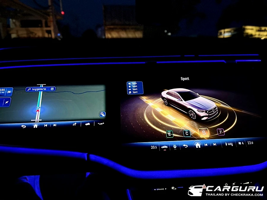 ภายในล้ำอนาคตฉีกรูปแบบเดิมของ E-Class โฉมก่อนหน้านี้ (W213) ด้วยการติดตั้งจอแสดงผล 3 จอ แบบเดียวกับใน S-Class ใหม่ มาตรวัดคนขับ 12.3 นิ้ว จอกลางขนาด 14 นิ้ว และ จอ Co-Drive Display อีก 12.3 นิ้ว สำหรับผู้โดยสารด้านหน้า ใช้งานได้สะดวก มีฟังก์ชั่นเหมือนจอกลาง สามารถปรับแต่ง ตั้งค่า ดูรายละเอียดต่าง ๆ ของระบบการทำงานตัวรถได้ครบทุกฟังก์ชั่น และยังสามารถดูหนังเชื่อมต่ออินเตอร์เนตดู Youtube ได้อีกด้วย แต่จะถูกตั้งค่าความปลอดภัยดูได้เฉพาะตอนจอดสนิทเท่านั้น