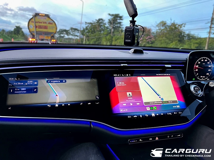 ภายในพร้อมไฟสร้างบรรยากาศ เบาะคู่หน้าทรงกึ่งสปอร์ตปรับไฟฟ้า 8 ทิศทาง พร้องดันหลังและหน่วยความจำ 3 ตำแหน่ง เบาะนั่งหลังใหญ่ แม้จะนั่งตรงกลางก็นั่งได้เต้มก้น พร้อมระบบควบคุมแอร์ด้านหลังแยกต่าง ๆ ที่วานแขนพร้อมที่วางแก้วน้ำ โปร่งโล่งสบยาด้วย Panoramic Sunroof พร้อมแผ่นบังแดด และม่านบังแดดไฟฟ้าหน้าต่างคู่หลัง