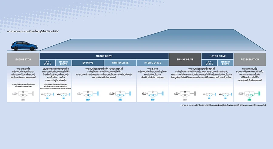 พละกำลังรวมสูงสุดทั้งระบบอยู่ที่ 194 แรงม้า(PS) (143 kW) แรงบิด 250 นิวตันเมตร พ่วงด้วยแบตเตอรี่ Lithium-ion (NMC) ความจุ 1.83 kWh จับคู่กับเกียร์อัตโนมัติ E-AT 3 สปีด ขับเคลื่อนล้อหน้า