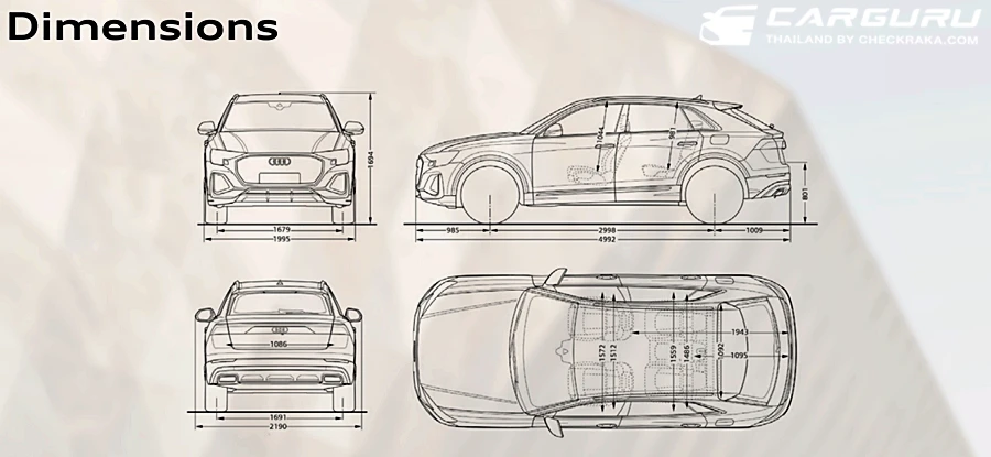 ภายในมาตรวัด Virtual cockpit ขนาด 12.3 นิ้ว จอกลาง MMI สัมผัสขนาด 10.1 นิ้ว พร้อมระบบเครื่องเสียงระดับพรีเมียม Bang & Olufsen และจอสัมผัสมัลติฟังก์ชั่นด้านล่างขนาด 8.6 นิ้ว สำหรับปรับระบบแอร์และการปรับปรับนั่ง เบาะนั่งหุ้มหนัง Valcona ติดตั้ง S line LED projector light