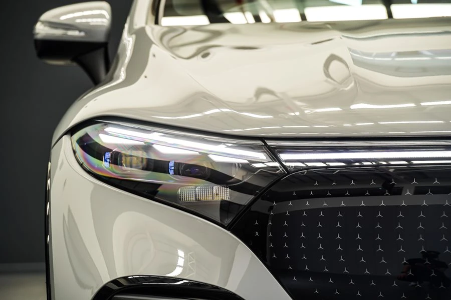 ดีไซน์ภายนอกของ EQE 300 มาพร้อมการตกแต่งรอบคันแบบ Electric Art Exterior Package เสริมด้วยชุดแต่ง Night Package และกระจังหน้าแบบ Mercedes-Benz pattern ติดตั้งไฟหน้าแบบ LED High Performance พร้อมระบบปรับไฟสูงอัตโนมัติ Adaptive Highbeam Assist