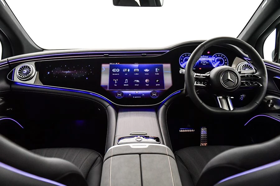 โดยซ่อนไว้ด้วยหน้าจอ OLED จำนวน 3 หน้าจอ กินพื้นที่จากเสา A-pillar ฝั่งหนึ่งไปยังอีกฝั่ง ทั้งยังมอบความสะดวกสบายที่เพิ่มขึ้นด้วยเบาะนั่งแบบ 7 ที่นั่ง 3 ตอน ติดตั้งหน้าจอเพื่อความบันเทิงที่สามารถควบคุมได้ด้วยระบบสัมผัสแบบ MBUX High-End Rear Seat จำนวน 2 จอขนาด 11.6 นิ้ว สำหรับผู้โดยสารตอนหลัง มาพร้อมเบาะนั่งไฟฟ้าที่สามารถปรับตำแหน่งที่นั่งได้ ระบบฟอกอากาศแบบENERGIZING AIR CONTROL Plus แอร์อัตโนมัติ THERMOTRONIC 4 โซน และเทคโนโลยีอื่น ๆ อย่างครบครัน