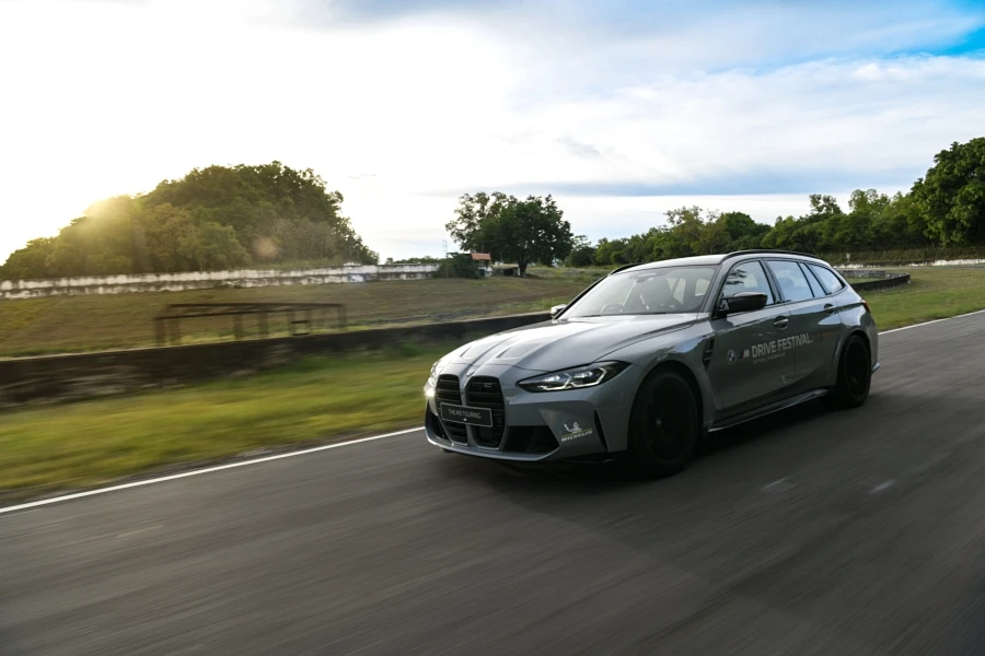 ถัดมาในรุ่น M3 Competition M xDrive Touring รถตระกูลเอ็มที่ดูเป็นมิตรมากที่สุดในเทสนี้ ด้วยการผสมผสานการเป็นรถซีดานทัวร์ริ่ง หรือ เอสเตท หรือ แวน ก็แล้วแต่เรียกผนวกเข้ากับขุมพลัง M ชูจุดเด่นขุมพลังเบนซินเทอร์โบ 6 สูบ 560 แรงม้า เกียร์ 8 สปีดสเตปทรอนิค พร้อมระบบขับเคลือน 4 ล้ออัจฉริยะ xDrive และเฟืองท้าย M สามารถทำเวลา 0-100 กม./ชม. ได้ที่ 3.6 วินาที การเข้าไปนั่งภายในห้องโดยสารให้อารมณ์และความรู้สึกที่แตกต่างกับ M2 ชัดเจนในทุกรายละเอียด การขับในสนามได้ 3 รอบสนามเหมือนกัน รอบแรกตามรถนำเพื่อจับอาการรถที่ต่างรุ่นทั้งจุดยกและเบรก การขับเปลี่ยนปรับโหมดเหมือนเดิมคือจากธรรมดา แล้วค่อยสปอร์ต ตัวรถมีอาการพอให้รู้สึกถึงการเหวี่ยงที่ด้านท้ายขณะเข้าโค้งความเร็ว แต่ไม่ใช่การเสียอาการแค่รู้สึกได้ว่ามีแรงเหวี่ยงที่ท้ายออกด้านข้าง ครบ 3 รอบ