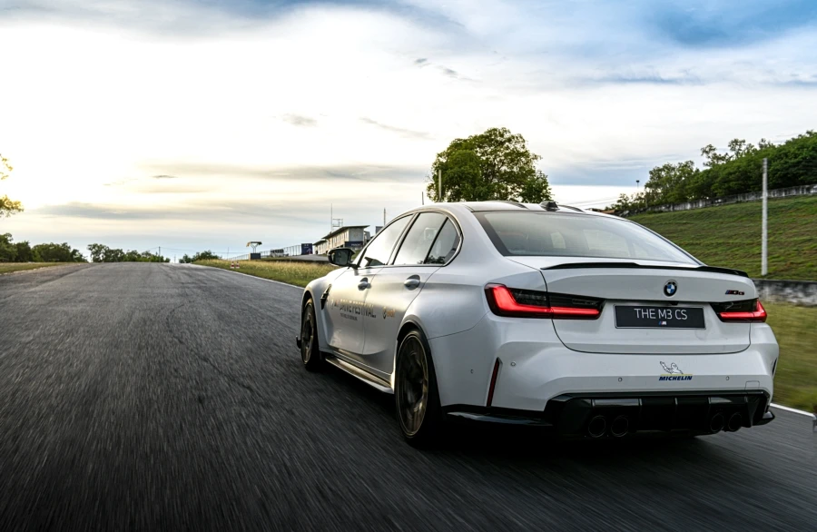 ต่อกับรุ่นแฟลกชิปของการขับครั้งนี้กับรุ่น M3 CS ที่ราคาแพงสุด 14,999,000 บาท อย่างที่หลายคนและผู้เขียนได้เห็นรุ่นนี้มาก่อนหน้าหลังเปิดตัวมา ความดุดันทั้งภายนอกและภายใน น้ำหนักตัวรถที่ถูกเซ็ตติ้งให้เบาด้วยพาร์ตคาร์บอนพรีเมียม นั่นทำให้อัตราส่วนแรงม้าต่อน้ำหนักอยู่ในระดับสูงเสมือนซูเปอร์คาร์ การขับ 3 รอบ ในรุ่นนี้ยอมรับว่าความแรงของขุมพลังและการทำงานของตัวรถต้องใช้สมาธิมากที่สุดเพราะแต่ละเสี้ยววินาทีพลาดไม่ได้ทั้งจุดยกคันเร่ง เบรก และเทิร์นโค้ง การทดสอบ จบการทดสอบแบบใช้เวลากับแทร็คจริงๆ ไม่ถึงครึ่งชั่วโมง พอได้แค่สัมผัสการทำงานของขุมพลัง M ในไลน์อัพที่แตกต่างกัน 3 รุ่น ซึ่งชัดเจนทั้งด้านราคา รูปลักษณ์ และกลุ่มผู้ใช้ รถบีเอ็มดับเบิลยูในตระกูล M ไม่ใช่รถที่ผลิตขึ้นมาสำหรับทุกคนที่อยากขับแบรนด์นี้ แต่ต้องเฉพาะคนที่ชื่นชอบและรู้จักความเป็น M เน้นความเป็นที่สุดด้านสมรรถนะแบบมอเตอร์สปอร์ต และพร้อมจ่ายเพื่อครอบครอง