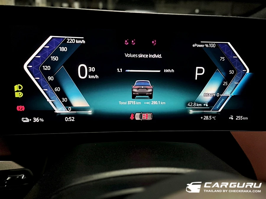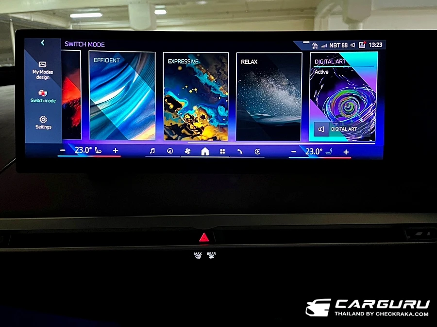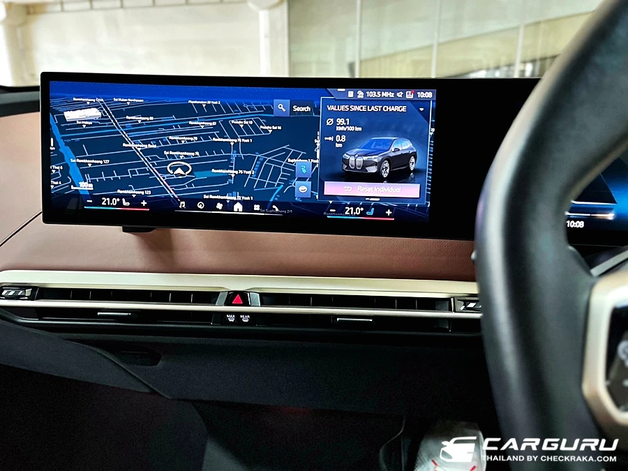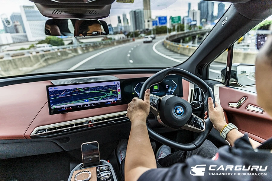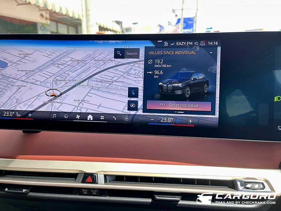 อีกสิ่งที่ชอบมาก ๆ ใน iX คันนี้คือ การเลือกโหมดขับขี่ที่เปลี่ยนได้ตามต้องการ โหมดขับขี่นี้จะรวมถึง Sport เอาไว้ด้วย แต่โหมดที่ชอบสุดคือ RELEX ที่จะเปิดระบบนวดให้เอง ทำให้ขับสบายผ่อนคล้ายยามรถติด ๆได้ดีมาก ๆ ส่วนถ้าระดับแบตเตอรี่เหลือน้อยหรือจำเป็นต้องประหยัดไฟฟ้าให้เลือก EFFICIENT ระบบจะคำนวนพลังงานทั้งระบบในรถยนต์ให้ใช้อย่างประหยัดและทำให้เพิ่มระยะทางคงเหลือที่วิ่งได้อีกประมาณ 20 กม. เลยครับ