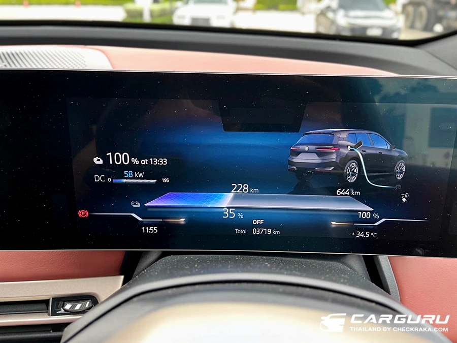 อัตราการกินไฟฟ้าสำหรับรถขนาดนี้ถือว่าไม่เกินเกินไปครับ จากตัวเลขบนมาตรวัดราว ๆ 20 kWh กับพลังระดับนี้นับว่าเหมาะสมไม่กินเกินไป และระยะที่วิ่งได้จริงจากวันที่รับรถมาทดสอบแบตเตอรี่ 99% ระะทางวิ่งได้ 533 กม. ขับไปกว่า 290 กม. ระดับแบตฯ ลดลงเหลือ 36% ระยะทางคงเหลือ 255 กม. นั่นคือสามารถวิ่งจริงประมาณ 500 - 540 กม. จากสเปคที่ระบุไว้ 549- 630 กม. (WLTP) sinv 620 กม. (NEDC) และเมื่อชาร์จไฟฟ้ากลับโดยตู้ชาร์จ PTT จาก 36 - 75% ระยะเวลา 50 นาที แวะกินข้าวสบาย ๆ พลังงานที่ใช้ 47.1 kWh (ตู้ชาร์จที่ใช้) จ่ายไป 362.67 บาทเท่านั้น อาจจะดูแพงเพราะสถานีชาร์จจะคิดอัตรา 7.70 บาท/kWh ตกกก.ละ 1 บาทกว่า ๆ ครับ สำหรับรถคันใหญ่สเปคดุดันอย่าง IX xDrive50 Sport คันนี้